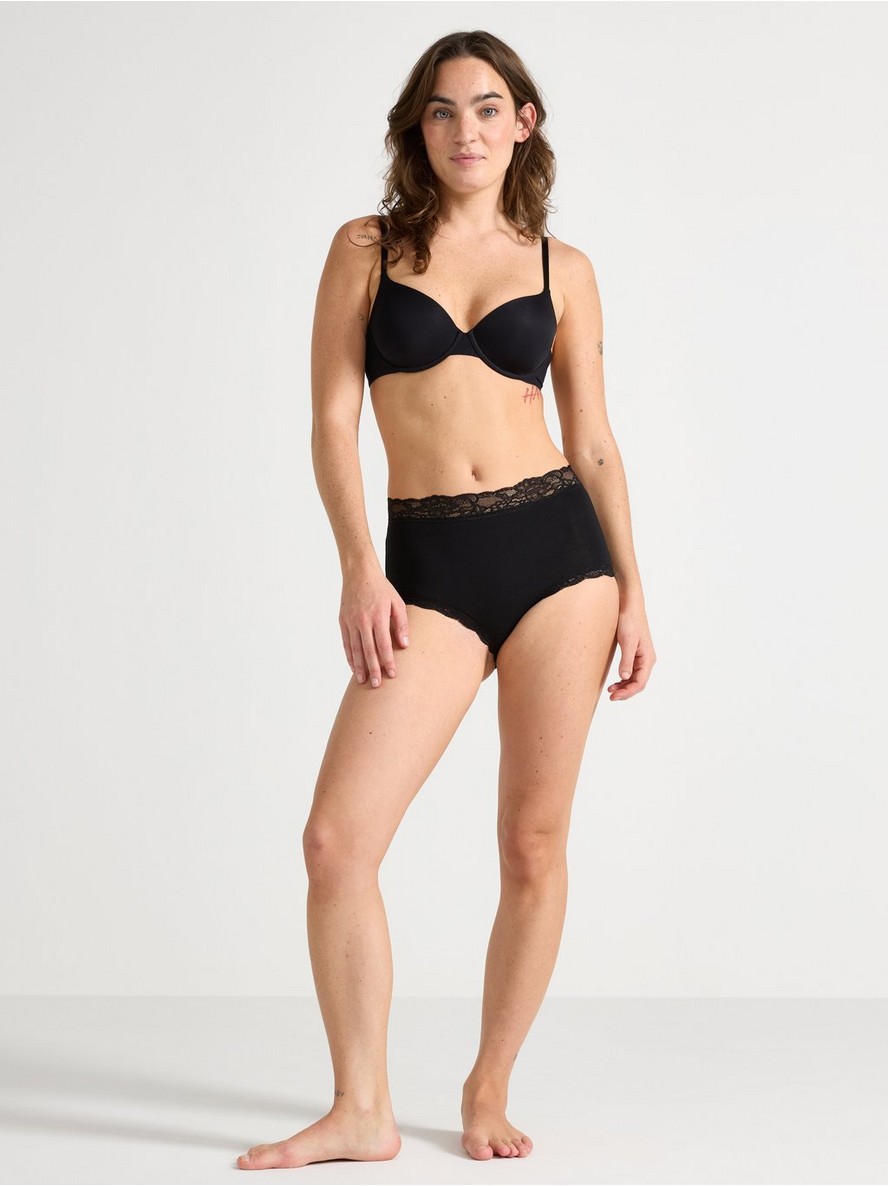 Udobne gaćice od meke i rastegljive mešavine pamuka, sa visokim strukom i čipkanim detaljima.