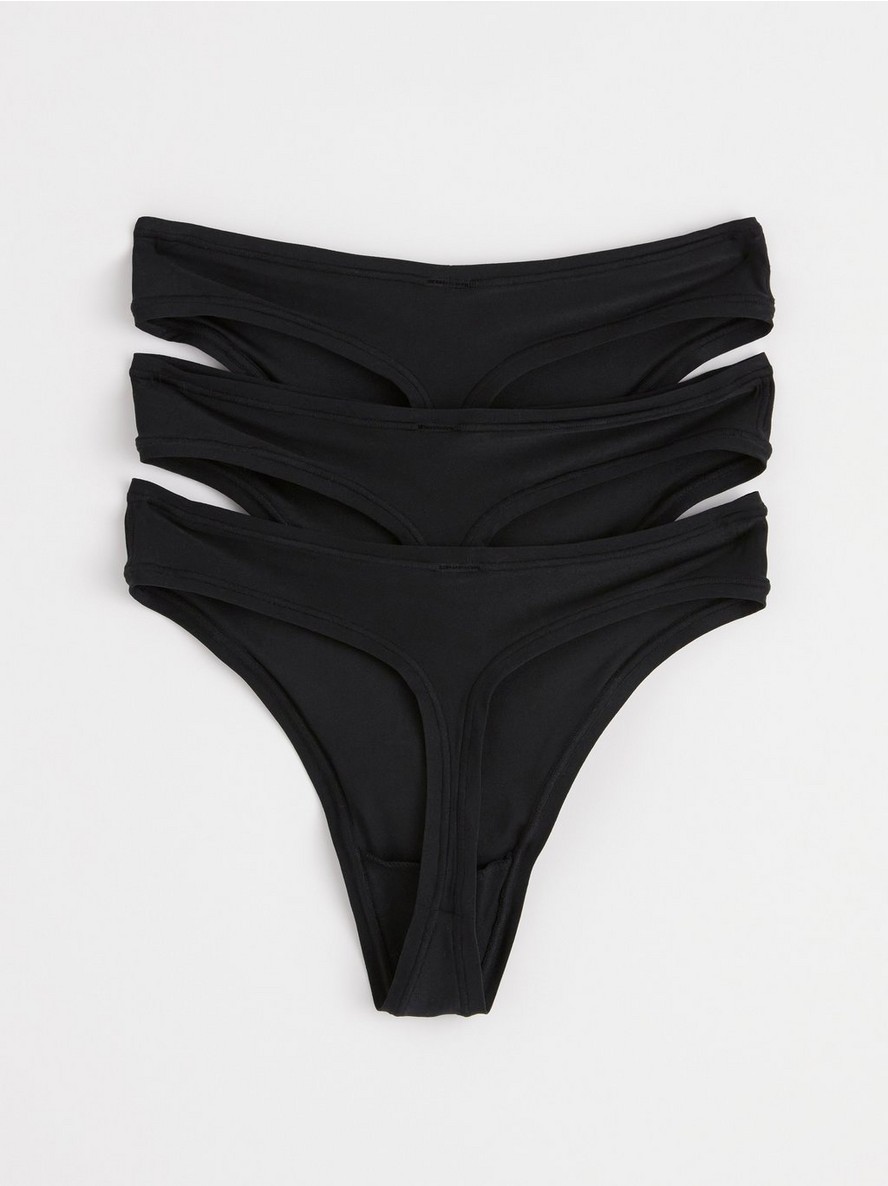 Tri para mekanih i udobnih tanga sa standardnim strukom i visokim izrezom nogu. Napravljene od super-elastičnog materijala za udobno pristajanje koje prati obline tela.