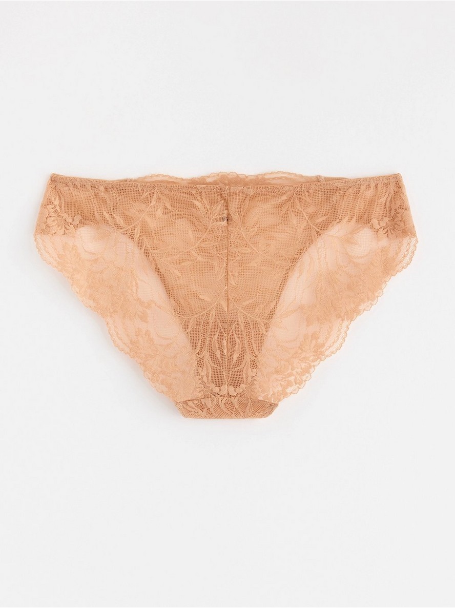 Mekane bikini gaćice od čipke sa standardnim strukom.
