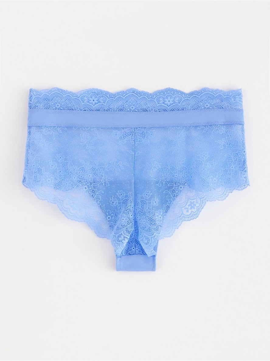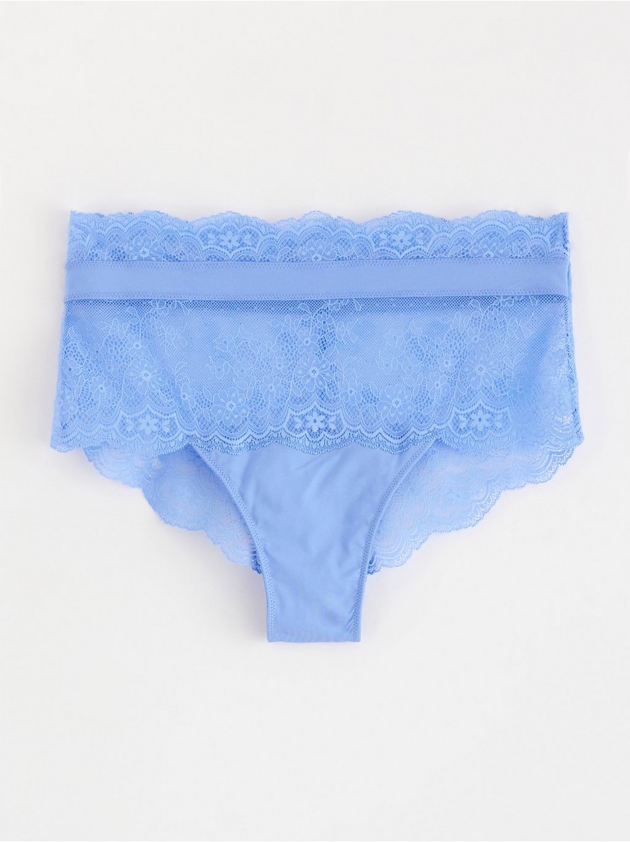 Brazilske gaćice sa visokim strukom i detaljima od čipke i satena.