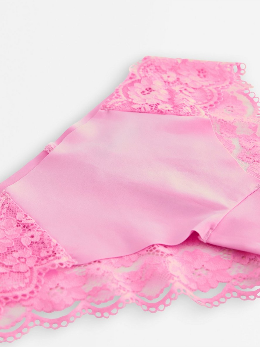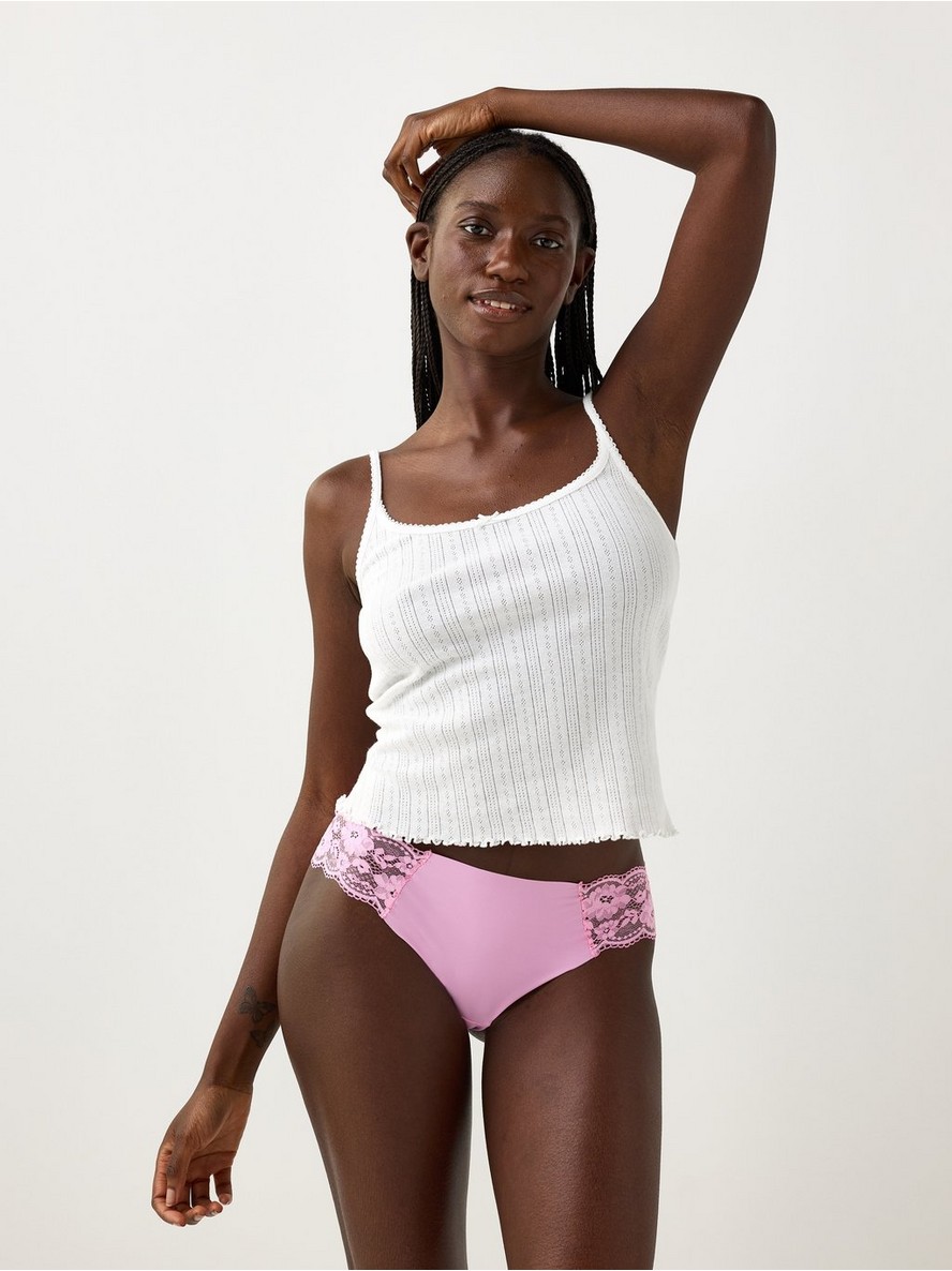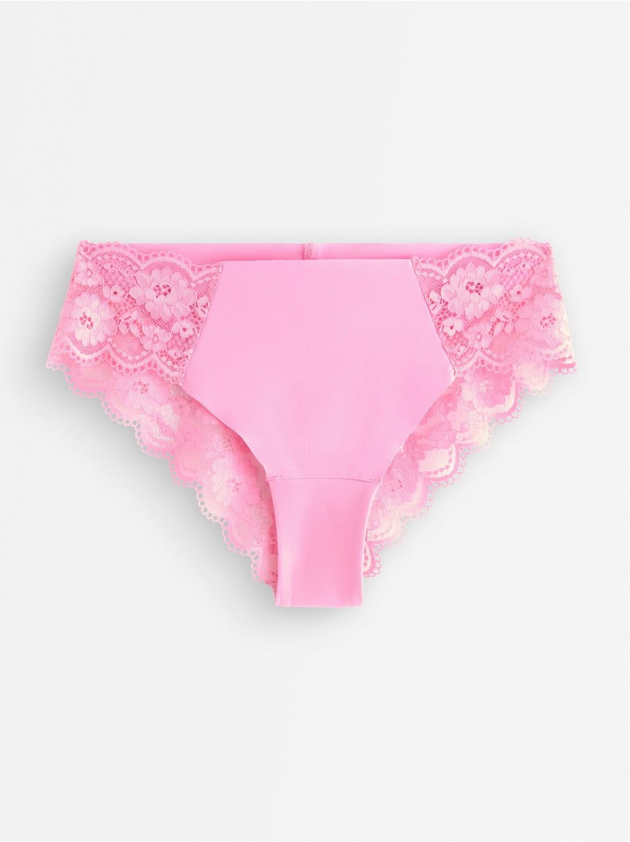 Brazilske gaćice sa nevidljivim dizajnom, standardnim strukom i detaljima od čipke.