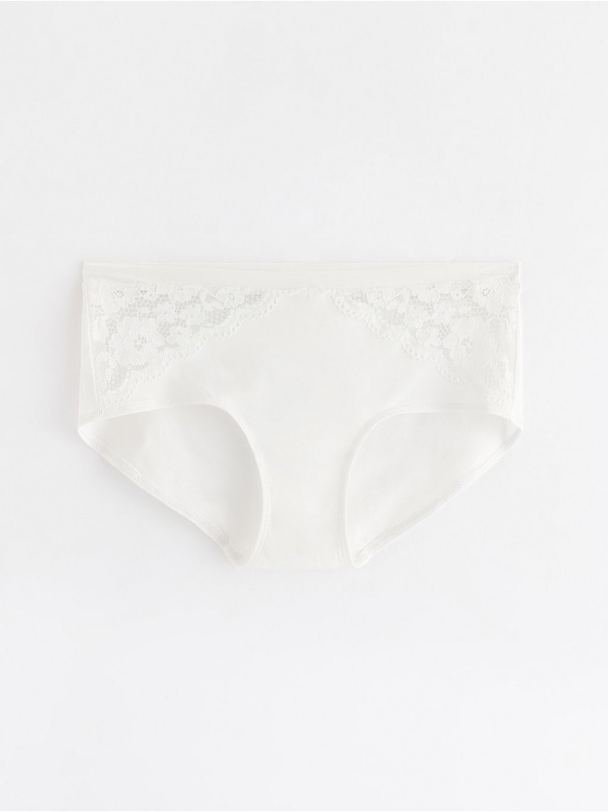 Gaćice sa standardnim strukom i detaljima od čipke sa strane.