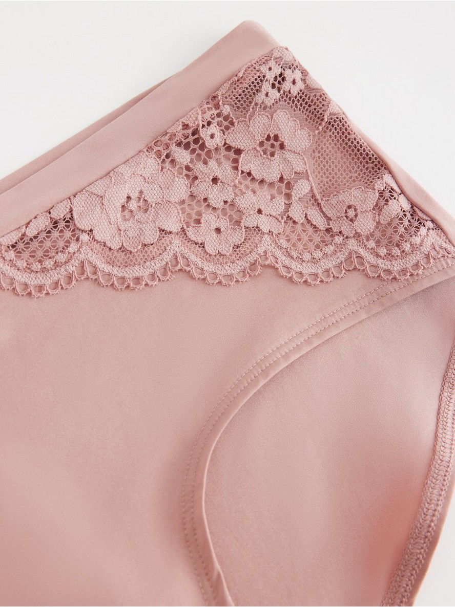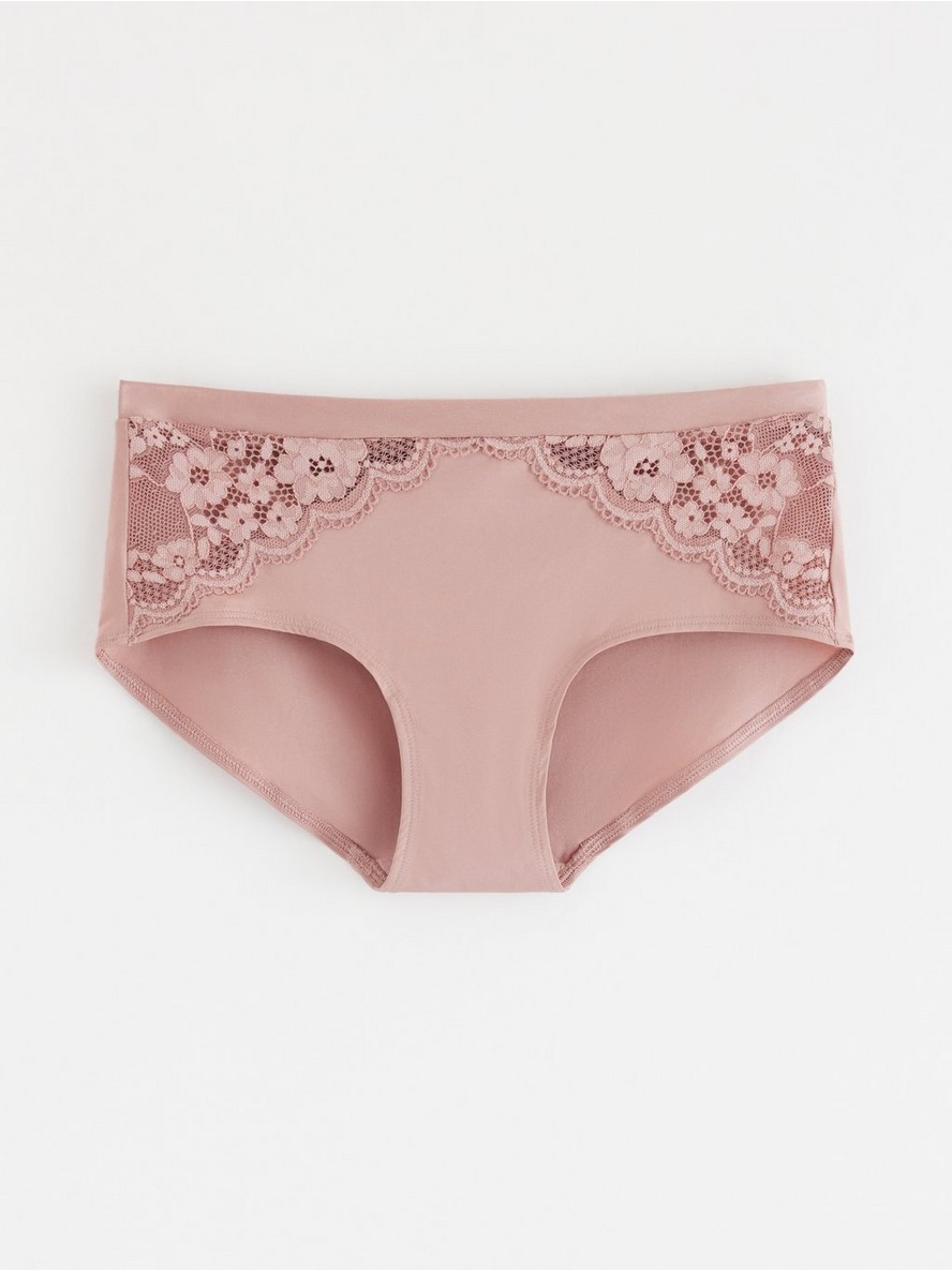 Gaćice sa standardnim strukom i čipkastim detaljima sa strane.