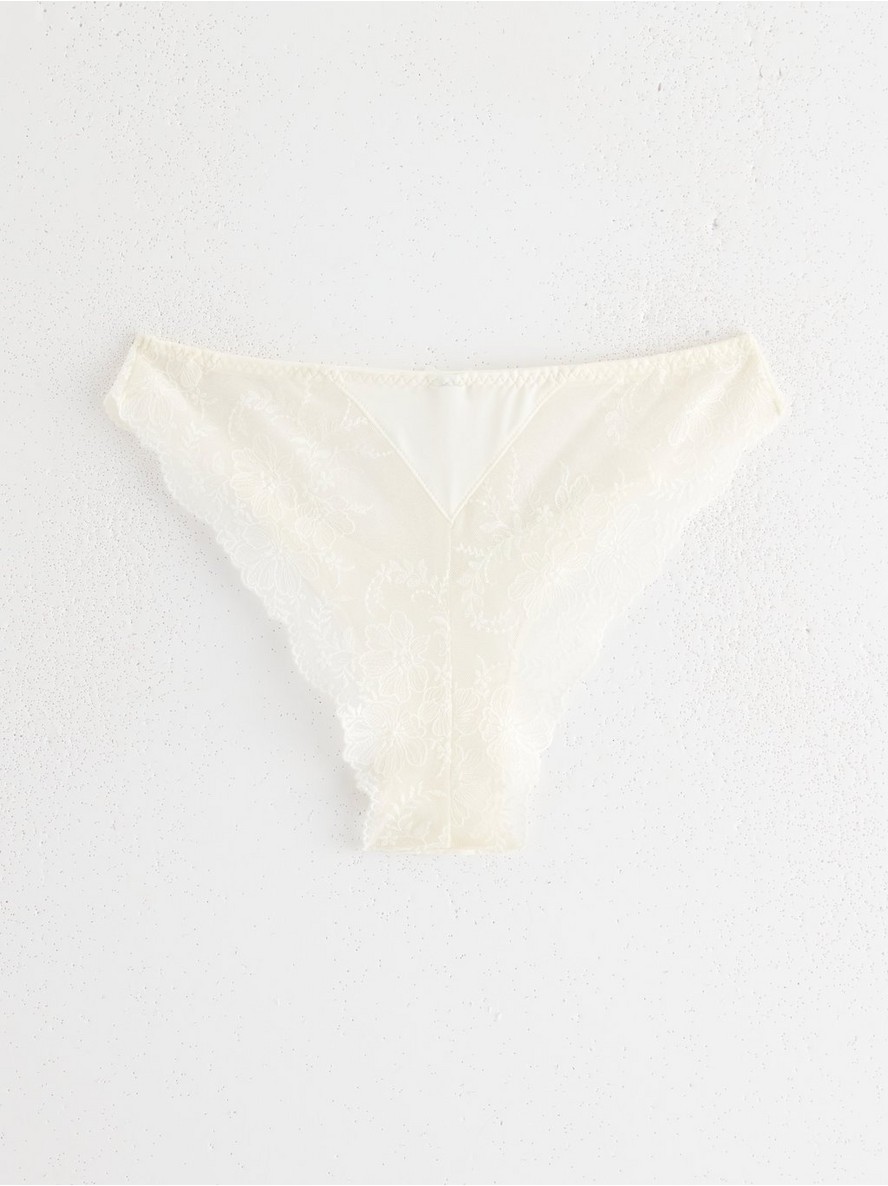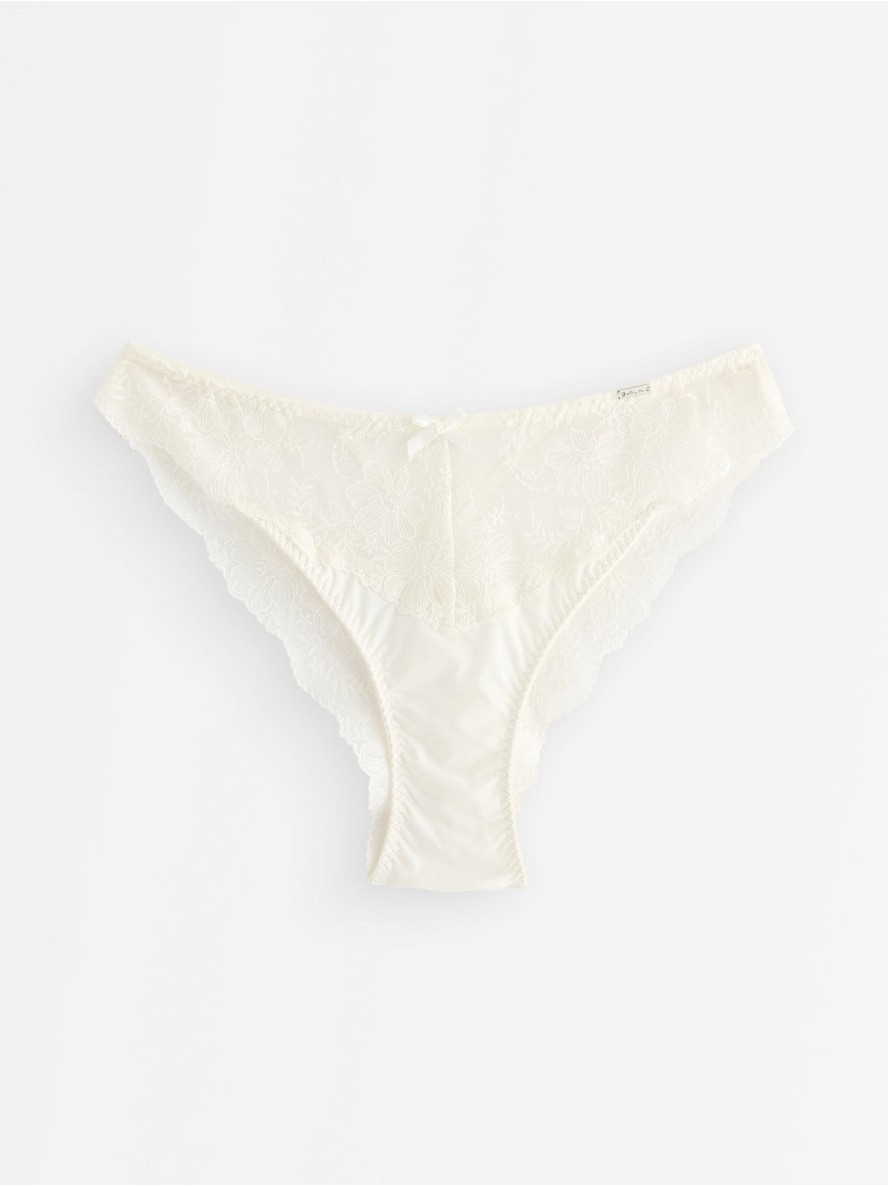 Brazilke sa standardnim strukom, čipkom sprijeda i straga, satenskim detaljima i malom mašnom.