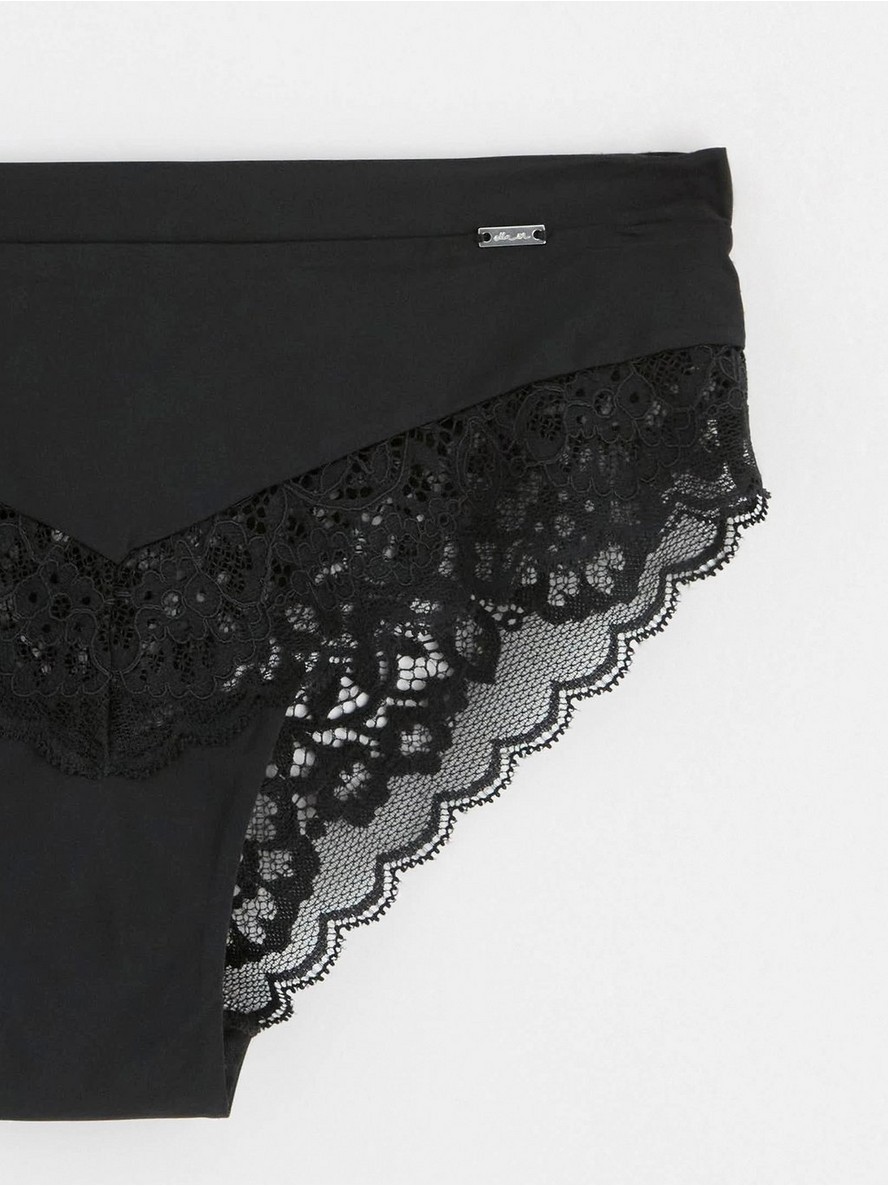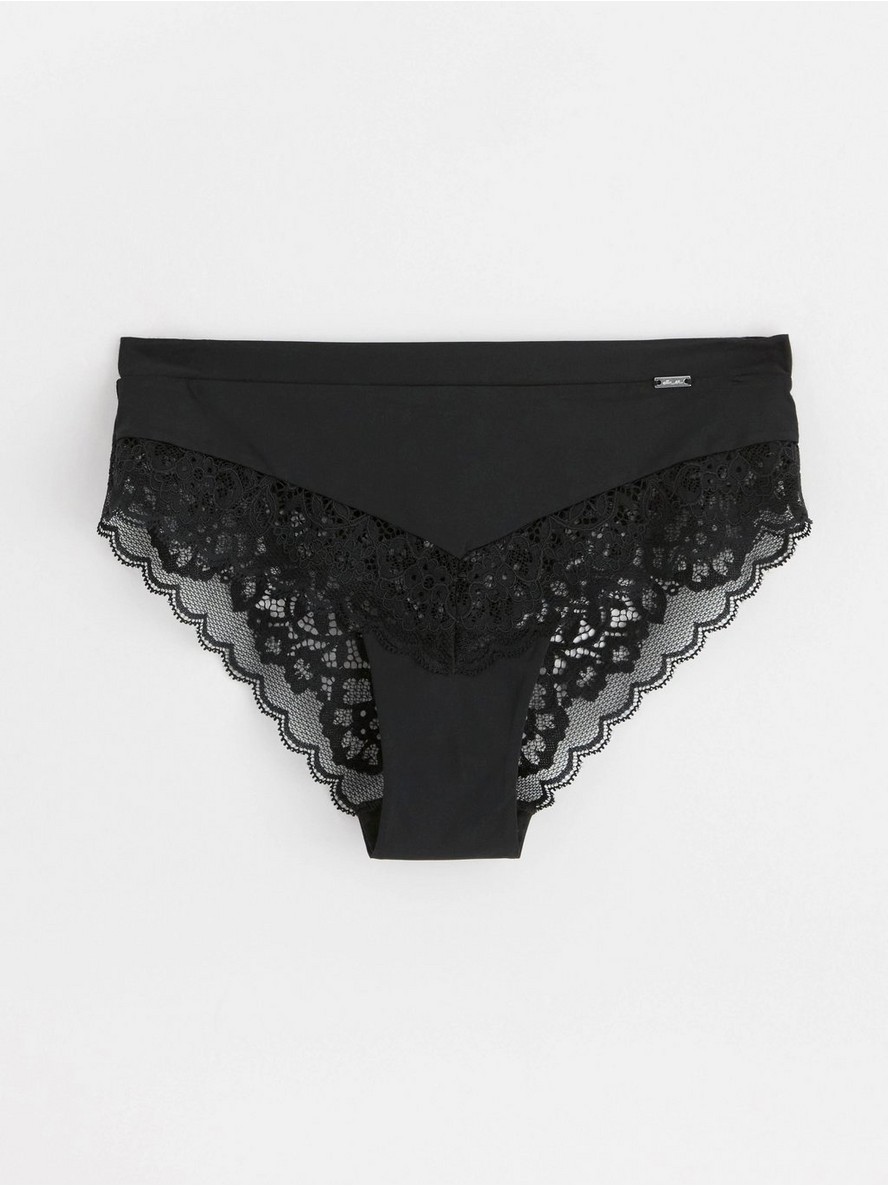 - Čipkani obrub napred i pozadi na otvorima za noge