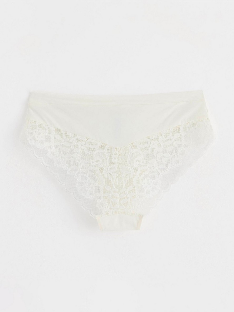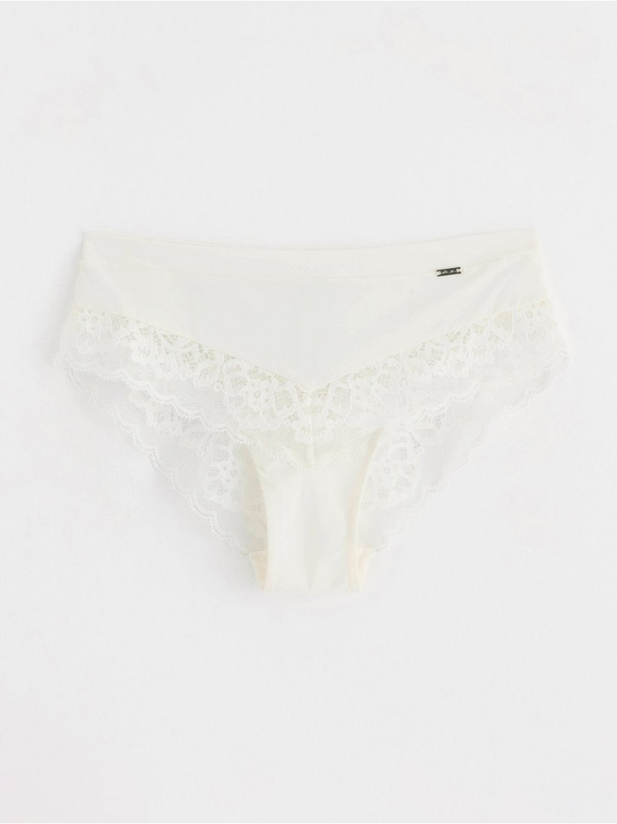 • Čipkani obrubi napred i pozadi na otvorima za noge
