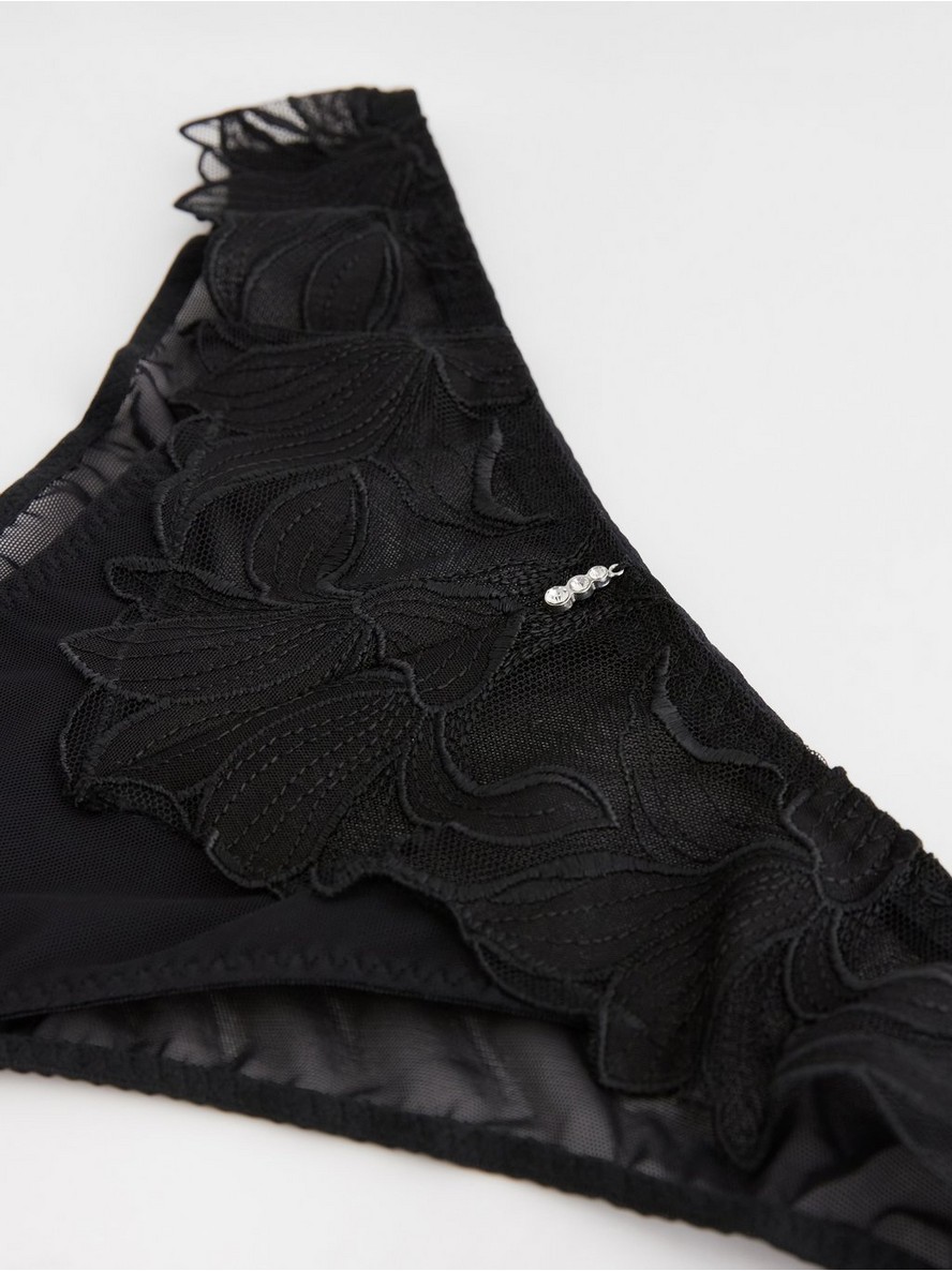 Brazilske gaćice sa standardnim strukom i detaljima od čipke.