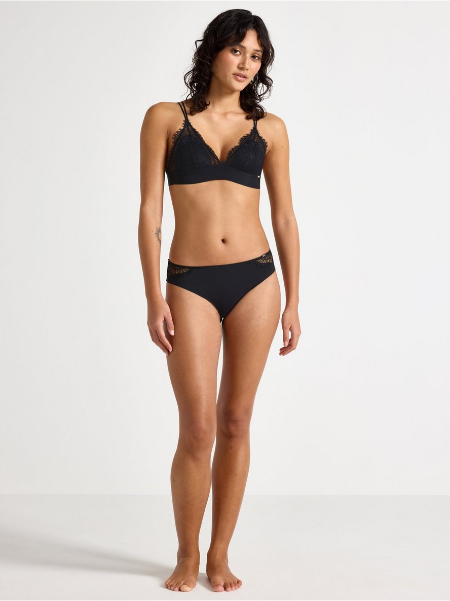 Elegantne gaćice brazilskog kroja sa niskim strukom i čipkanim detaljima. Nosite uz odgovarajući grudnjak za savršen komplet.