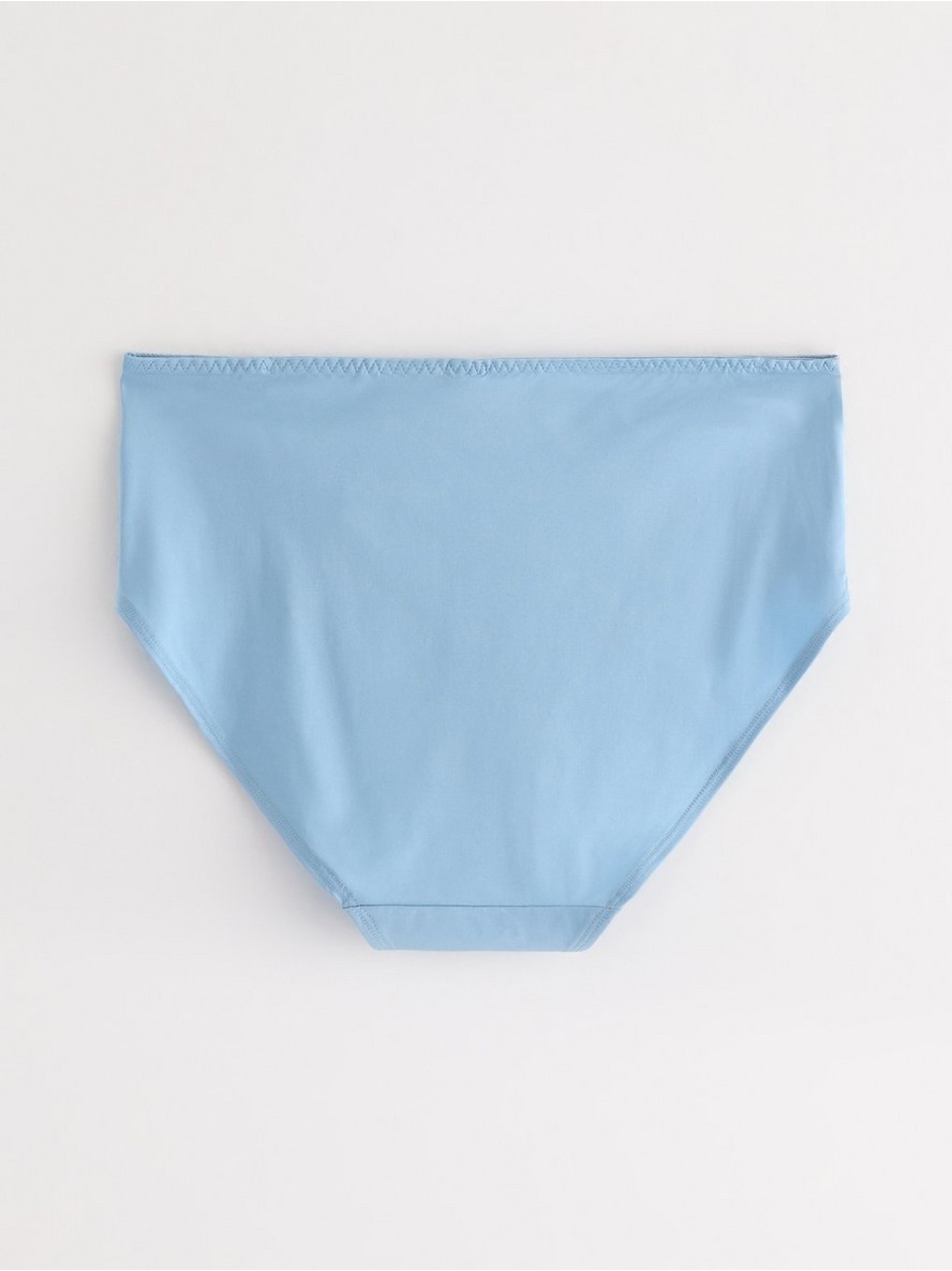 Gaćice od mekanog mikrovlakna sa klasičnim strukom, čipkastim bočnim umetkom i malom mašnicom napred.