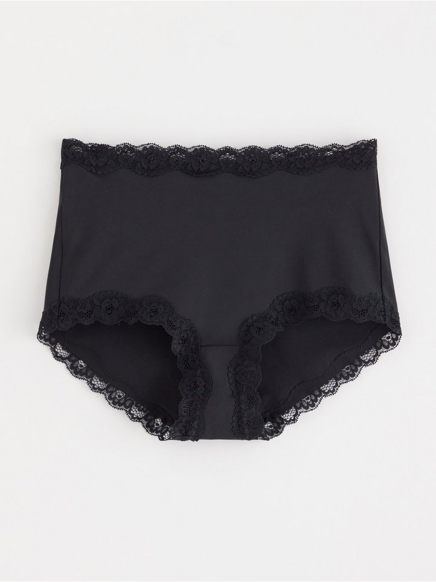 Meke gaćice visokog struka sa nežnim čipkanim detaljem i udobnom siluetom.