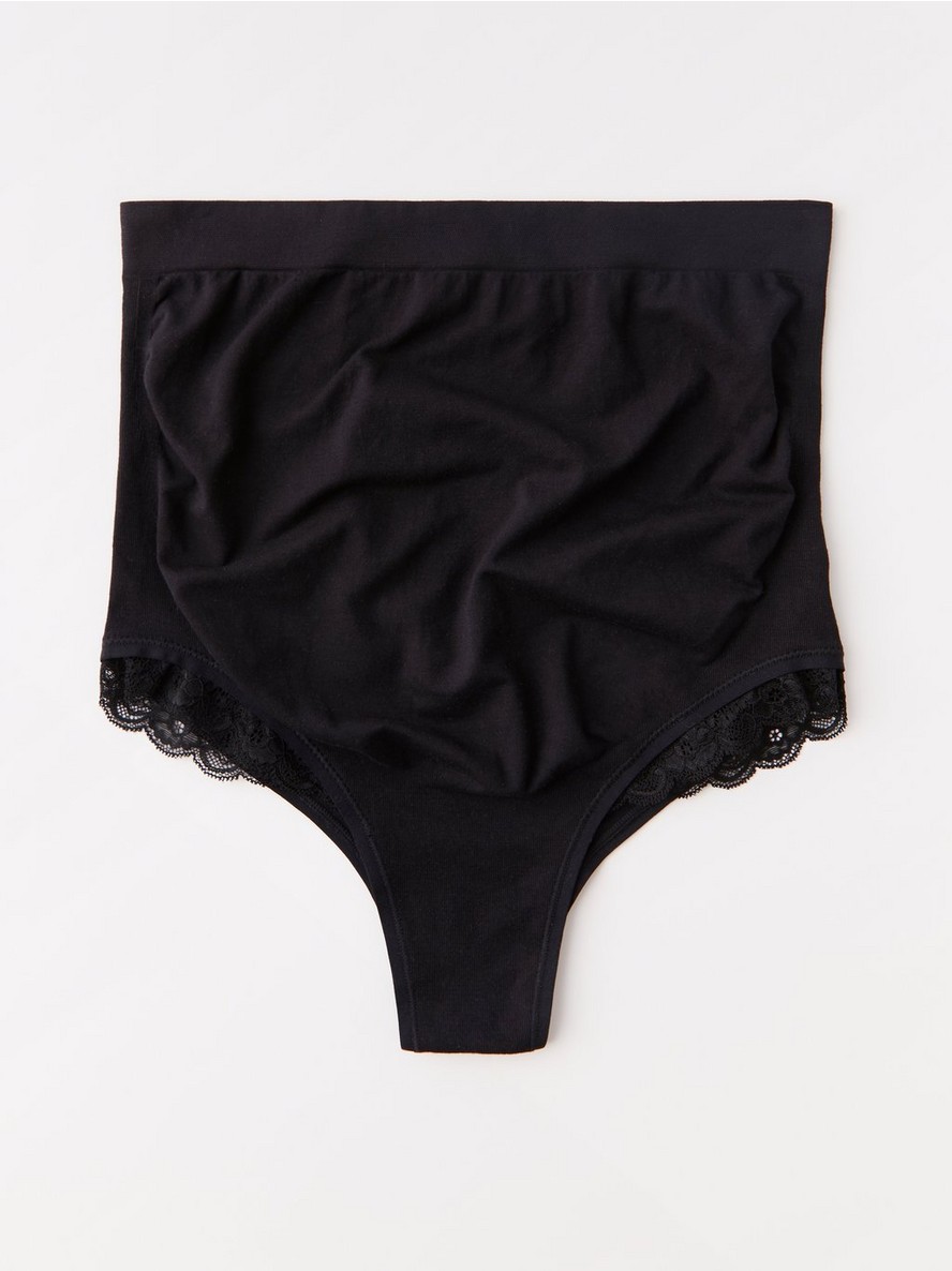 Zaista mekane i udobne gaćice sa čipkanim detaljima, dizajnirane da se prilagode rastućem stomaku zahvaljujući visokom struku. Materijal je izrađen od 83% TENCEL™ modala, što je održivija opcija u odnosu na konvencionalni modal.