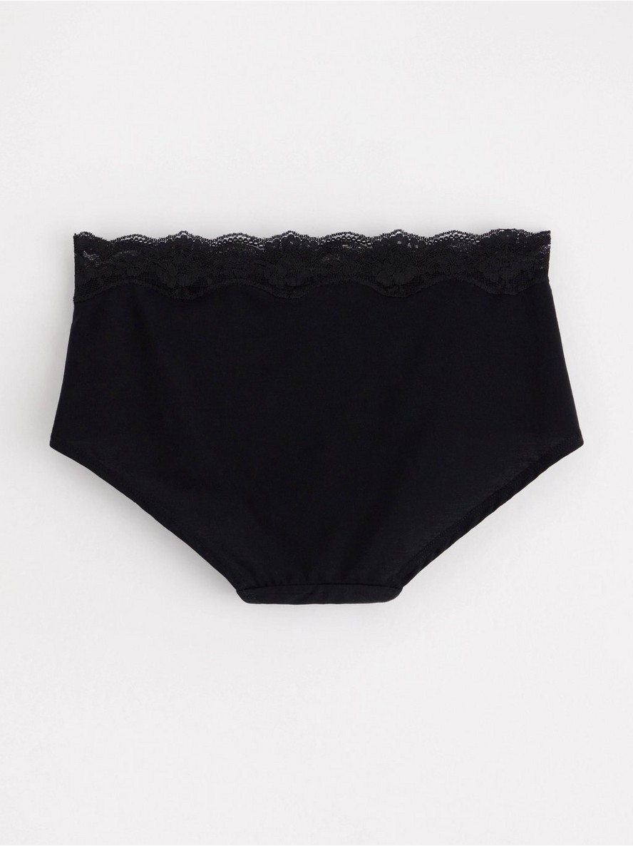 Mekane i udobne gaćice s klasičnim strukom i čipkanim detaljem na struku.