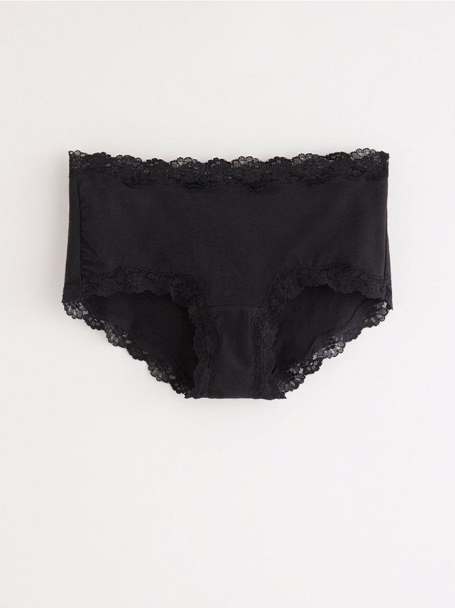 Klasican par gaćica u crnoj ili beloj boji, izrađen od meke mešavine organskog pamuka sa finim čipkanim obrubom.