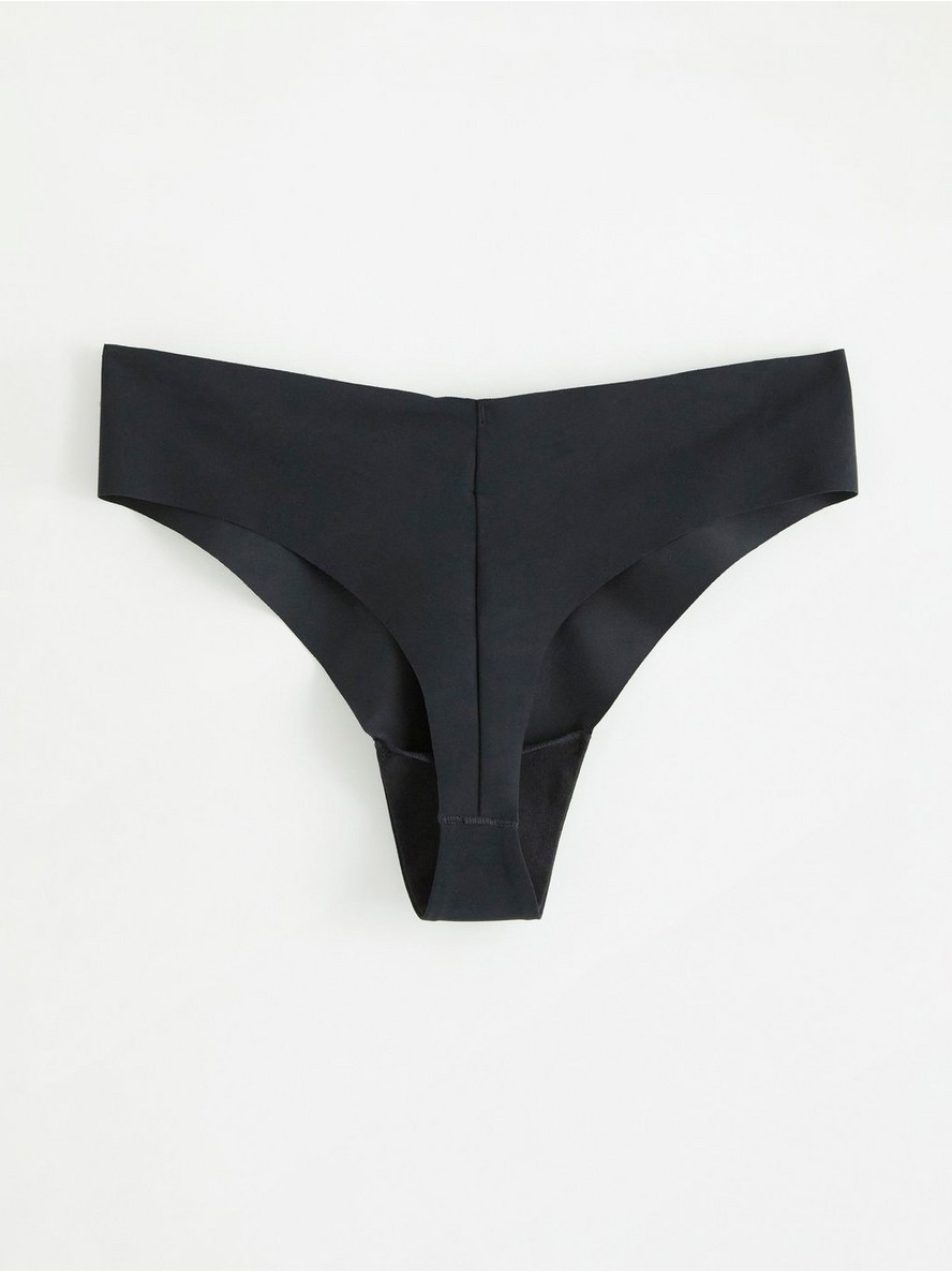 Glatka i udobna bezšavna tanga sa uobičajenim strukom i visokim izrezom nogu.
