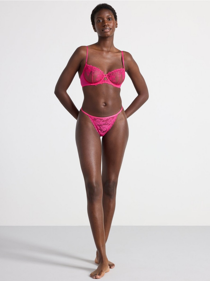 Tanga niskog struka izrađena od cvetne čipke i mrežice.