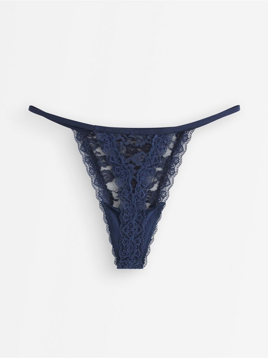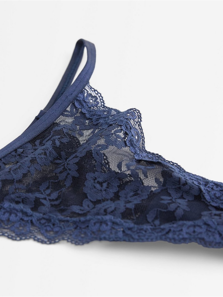 Tanga niskog struka izrađena od cvetne čipke i mrežastog materijala.