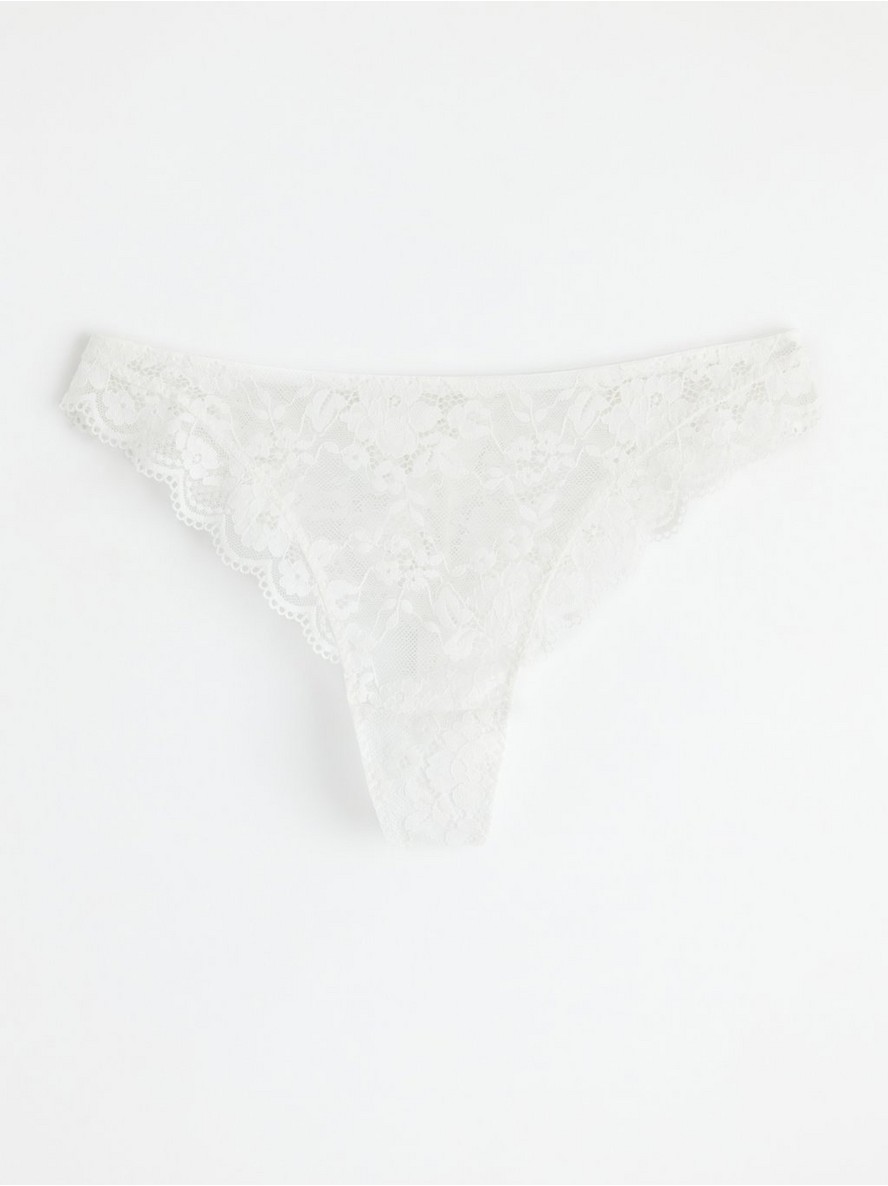 Tanga sa srednjim strukom, od mrežice i cvetne čipke po celoj površini.