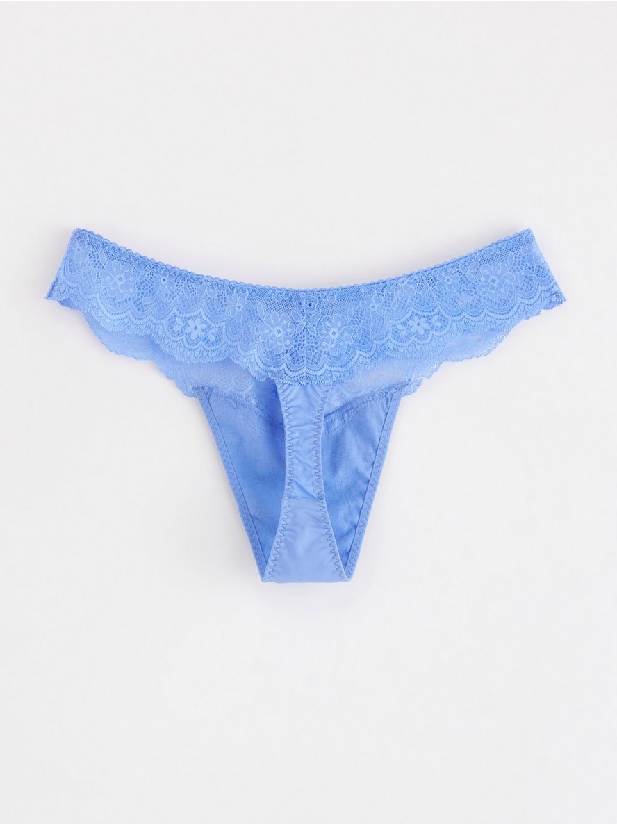 Tangice sa standardnim strukom, čipkanim i satenskim detaljima i malom mašnom napred.
