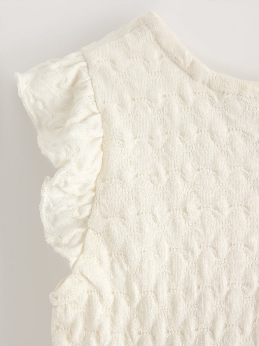 Haljina od džerseja sa strukturom i volanom na ramenima.