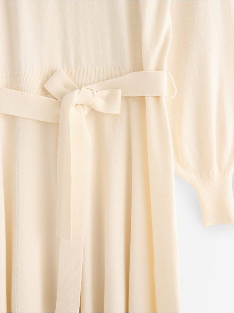 Fino pletena mini haljina sa dugim rukavima i pojasom za vezivanje u struku.