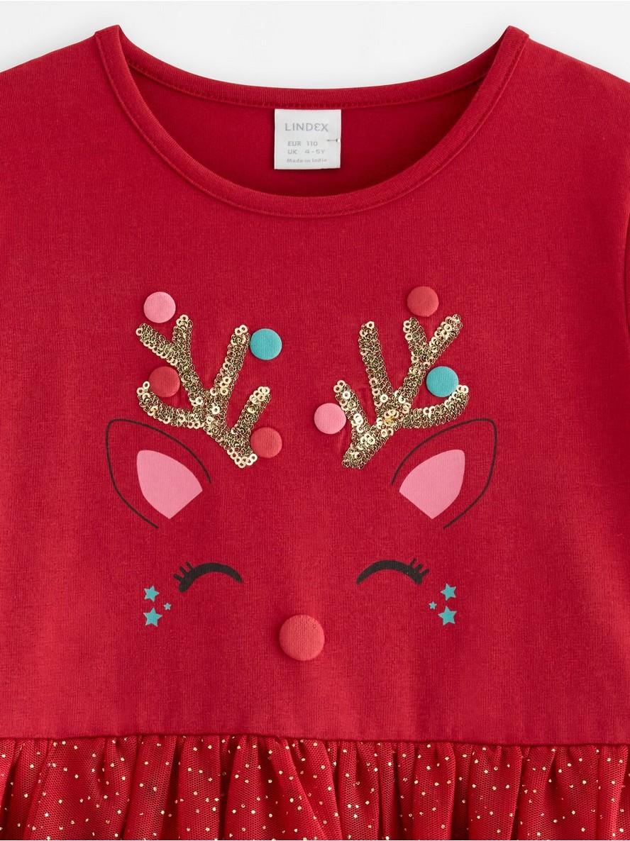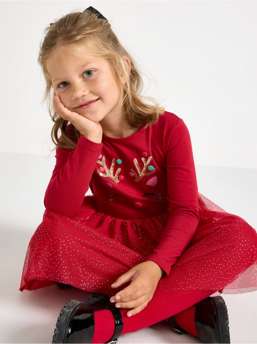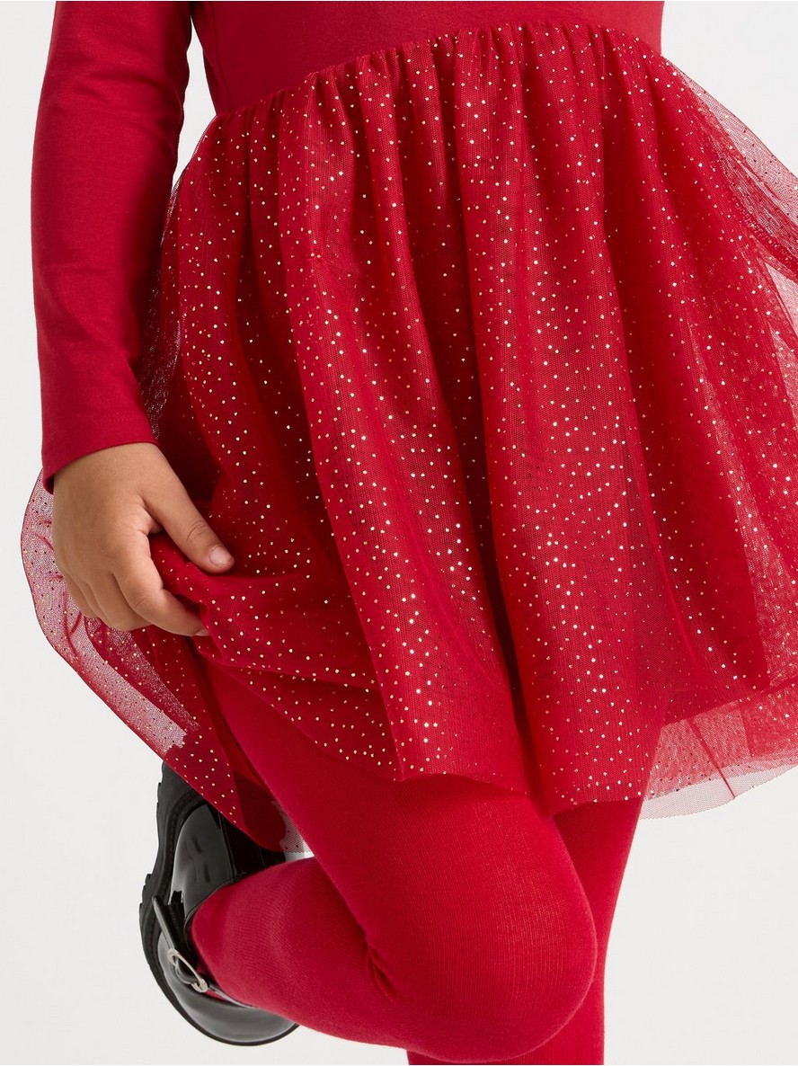 Mekana haljina dugih rukava sa džersej gornjim delom i mrežastom suknjom.