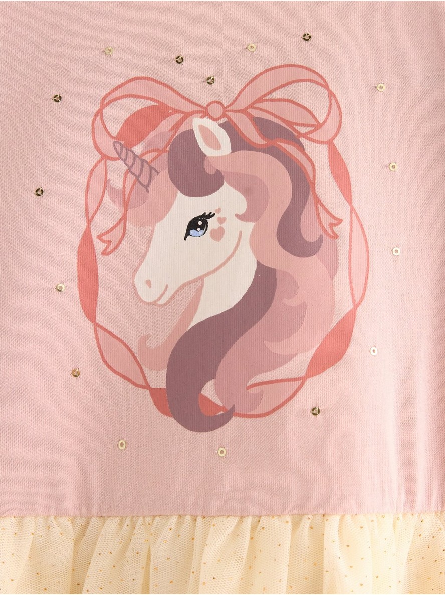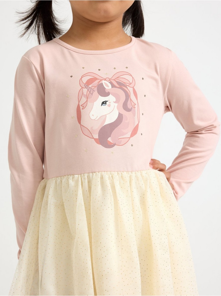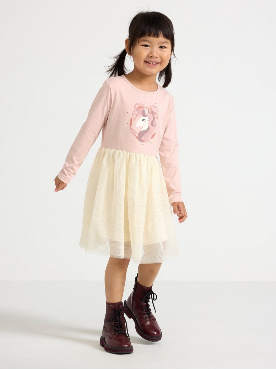 Haljina dugih rukava sa mrežastim gornjim delom.