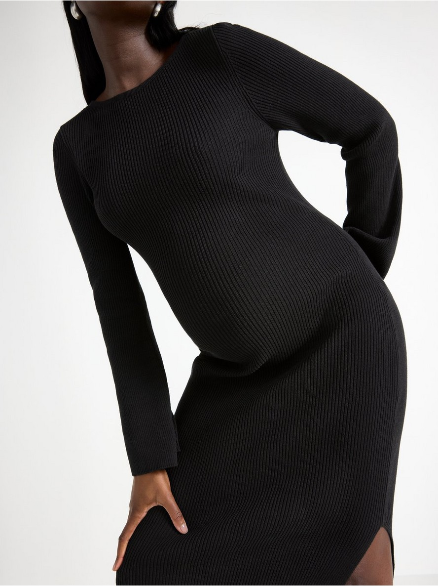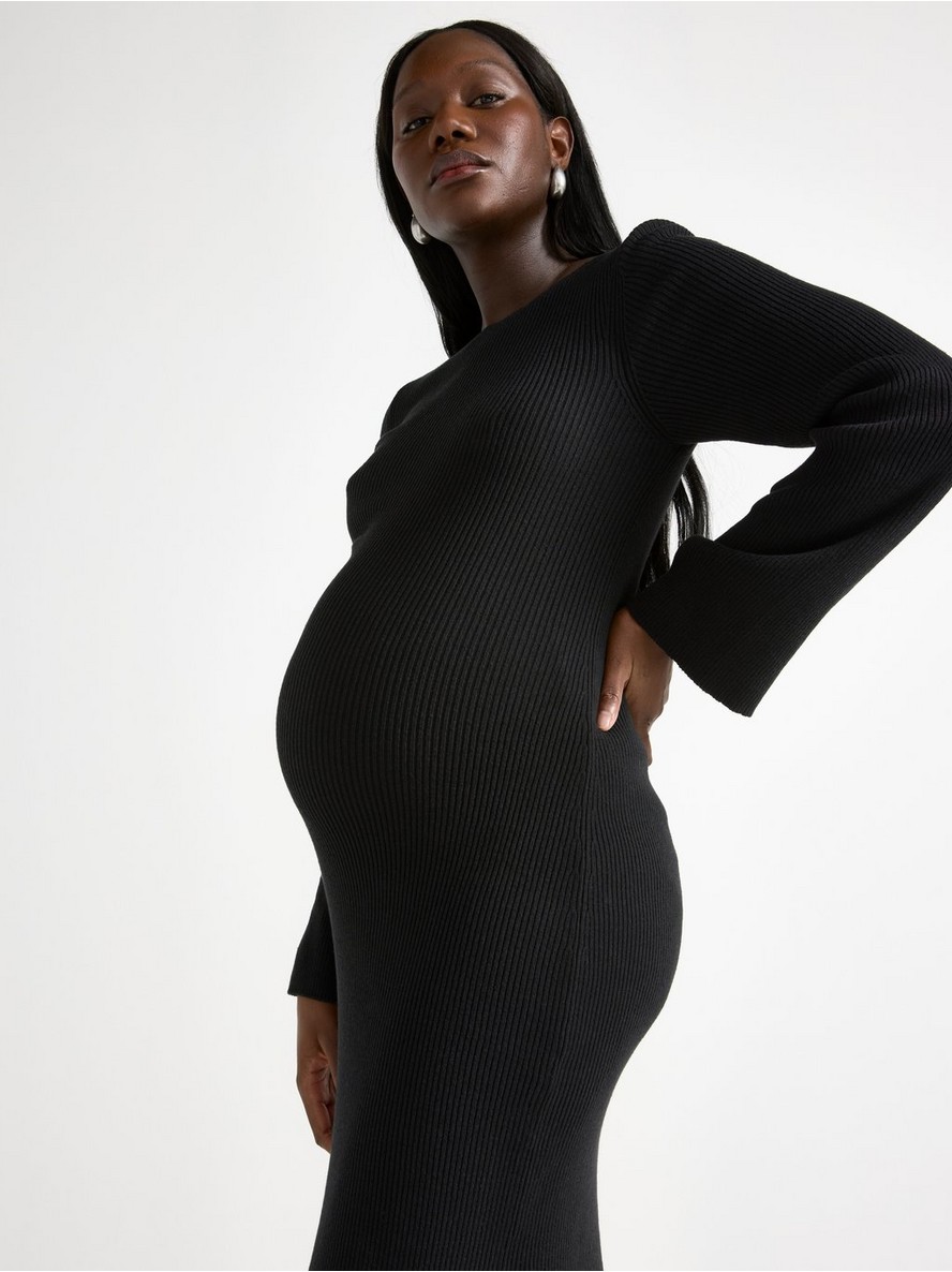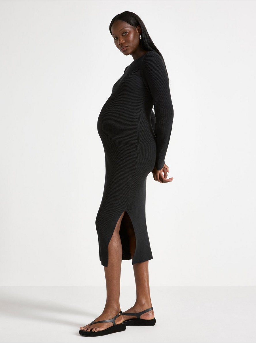Midi haljina dugih rukava od rebrastog pamučnog pletiva, sa dodatnim mestom za rastući stomak.