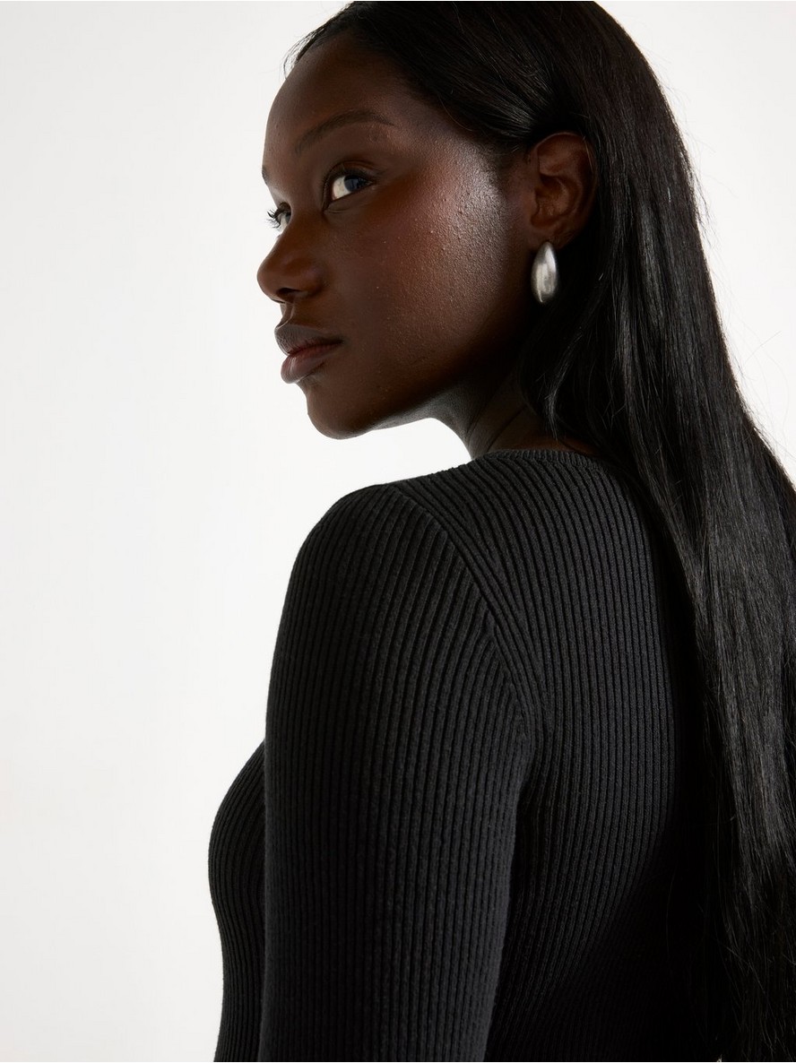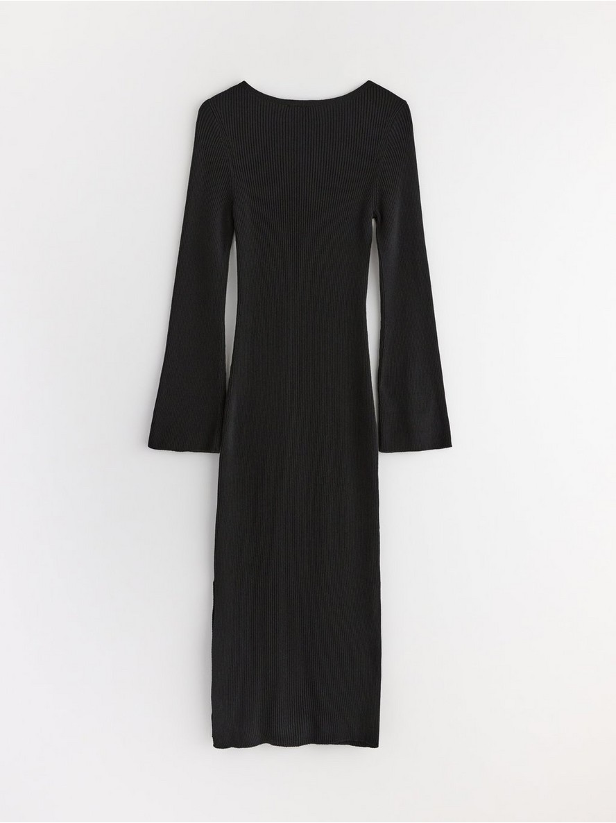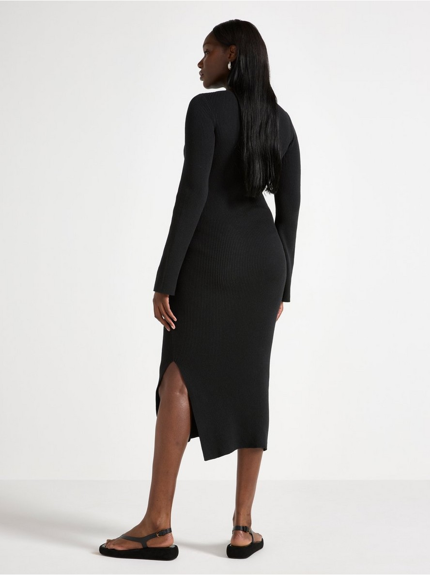 Midi haljina dugih rukava od rebrastog pamučnog pletiva, sa dodatnim mestom za rastući stomak.