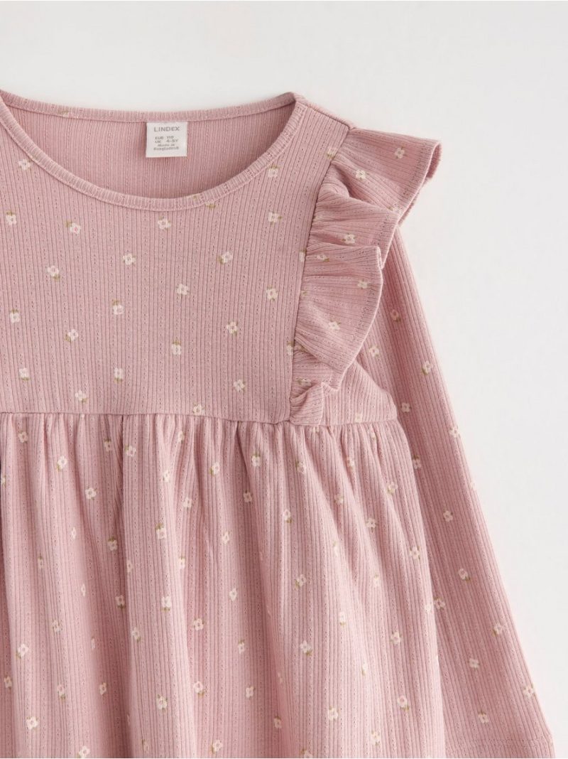 Mekana džersej haljina od pamuka sa volanima na ramenima.