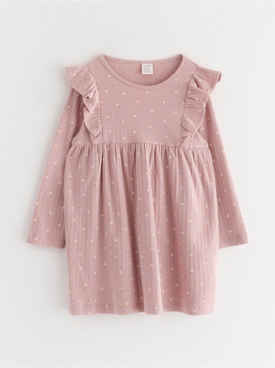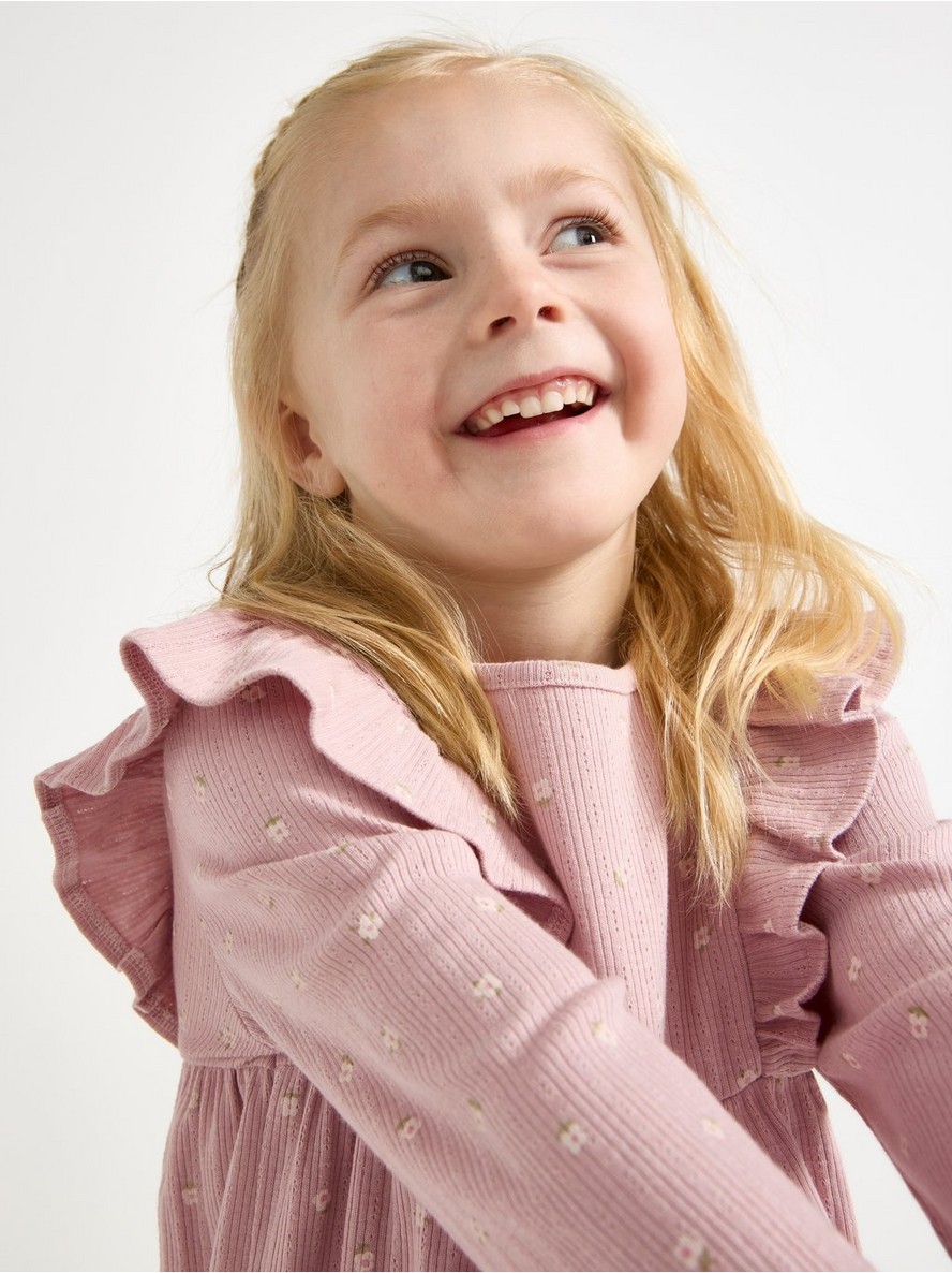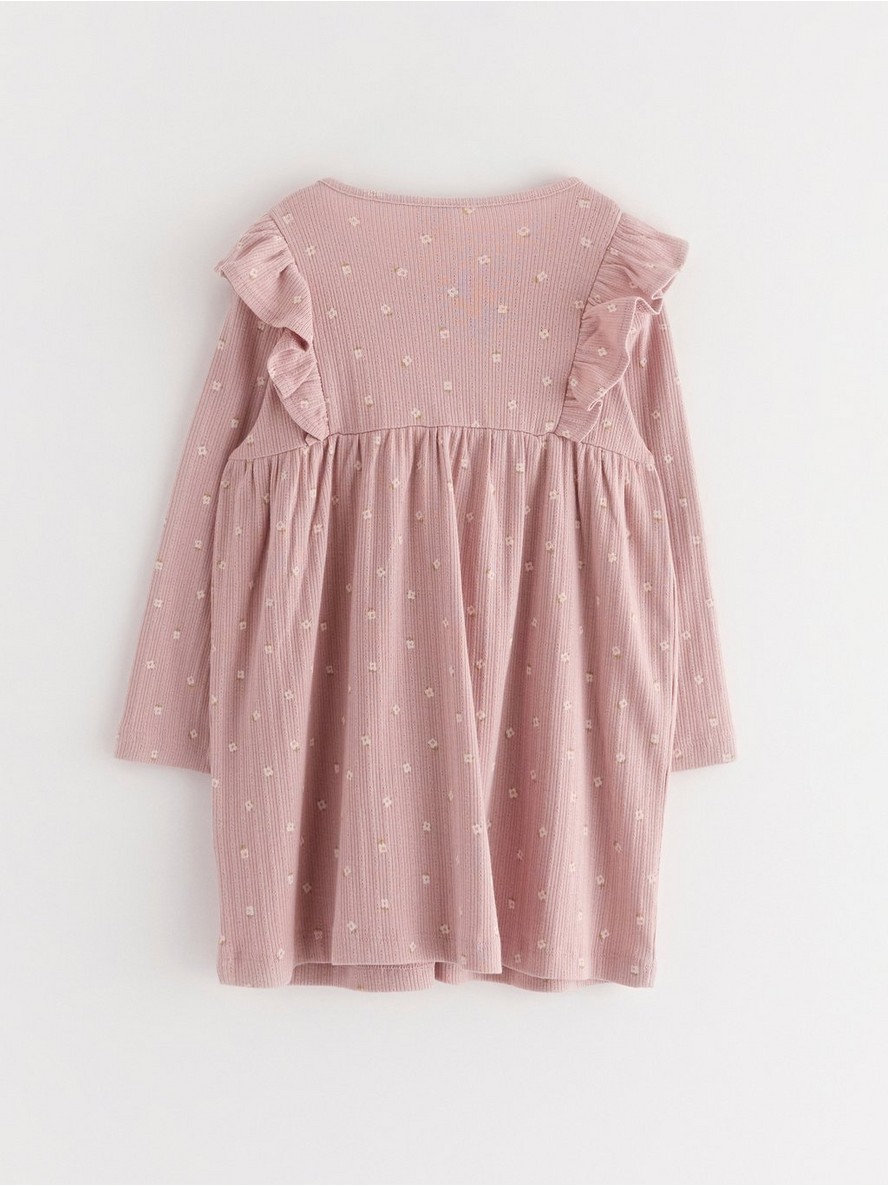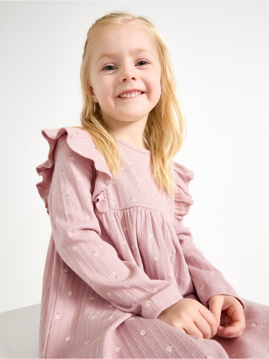 Mekana džersej haljina od pamuka sa volanima na ramenima.