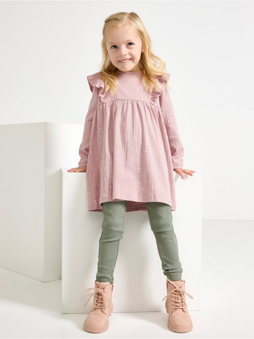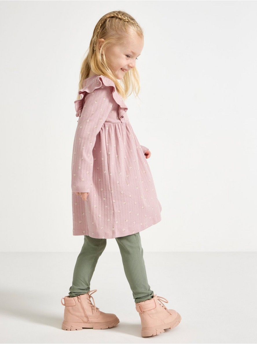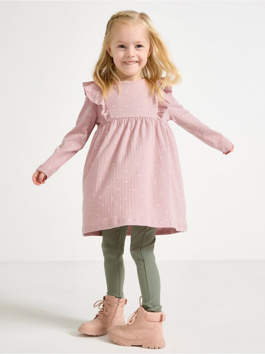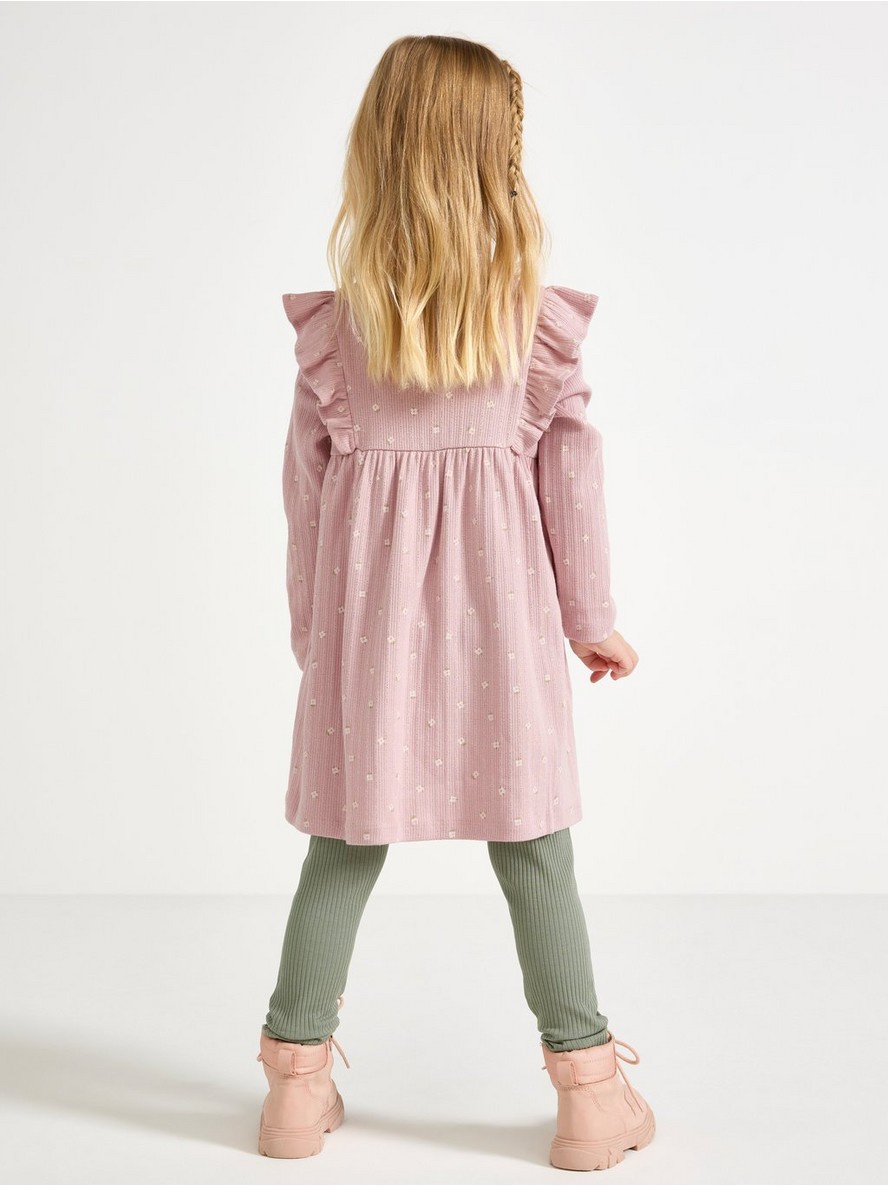 Mekana džersej haljina od pamuka sa volanima na ramenima.