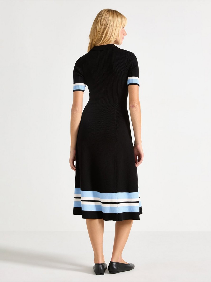 Midi haljina sa kratkim rukavima od rebrastog materijala.