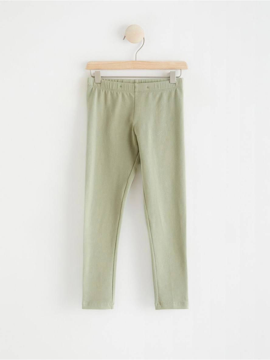 Par mekanih, jednobojnih helanki sa podesivim elastičnim pojasom. MATERIJAL. Ovaj komad ima GOTS sertifikat. Napravljen je od organskog pamuka i svaki korak u proizvodnji nezavisno je sertifikovan kako bi se osiguralo da ispunjava društvene i ekološke zahteve GOTS-a (Globalni standard za organski tekstil).
