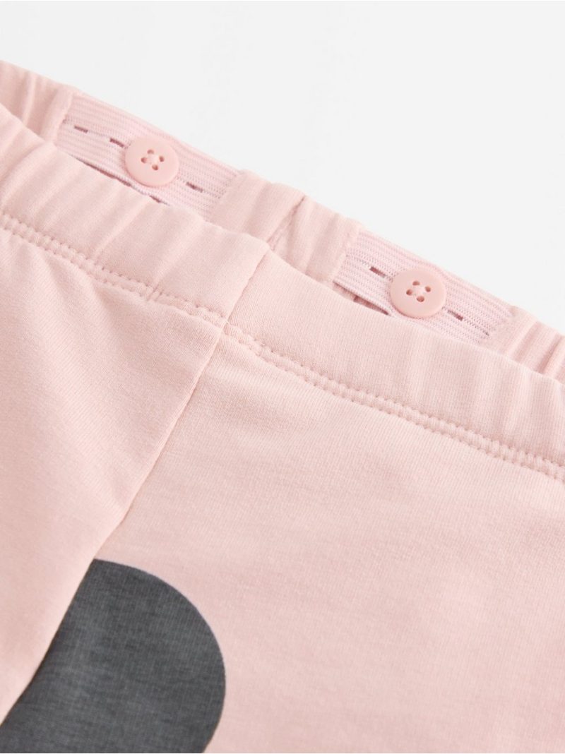 Helanke od mekanog i rastegljivog pamuka, sa dezenom po celoj površini i podesivim pojasom za udobno pristajanje.