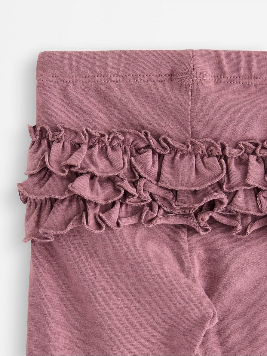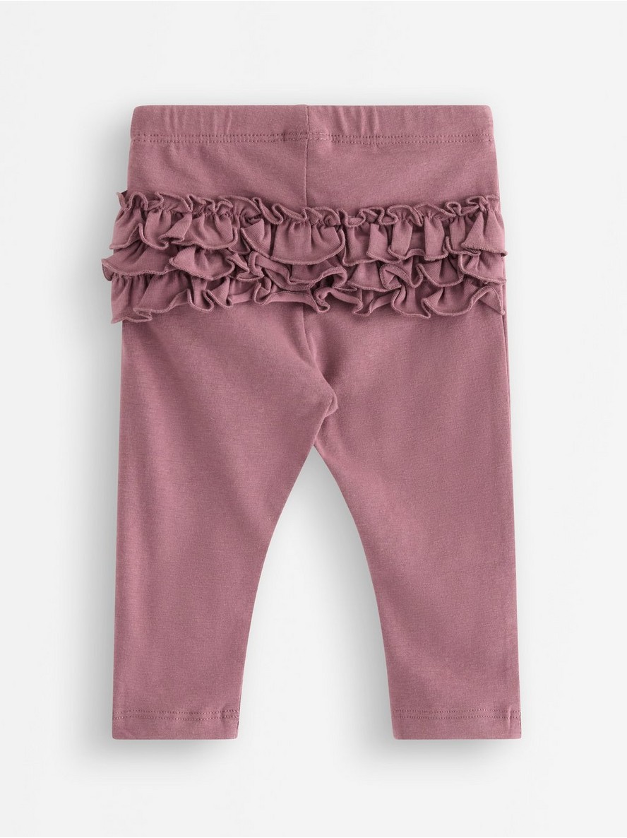 Helanke od mekanog pamučnog džerseja sa elastičnim pojasom i volanima na zadnjem delu.