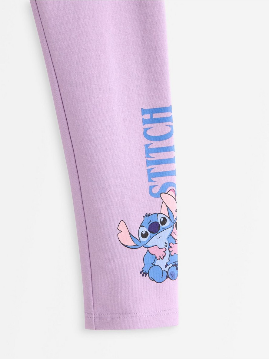 Helanke od pamučnog džerseja sa mekom, brušenom unutrašnjošću i printom na jednoj nogavici.