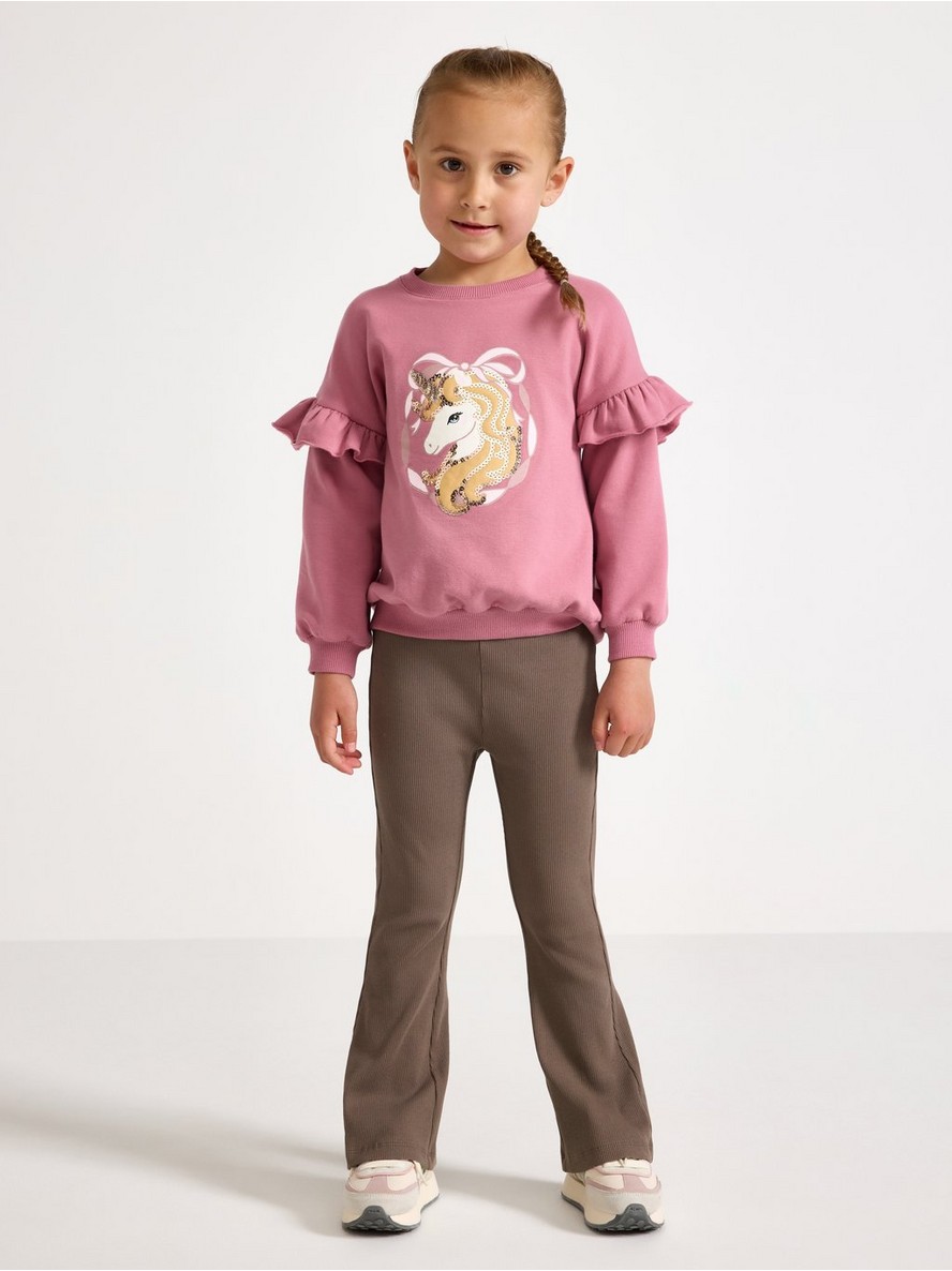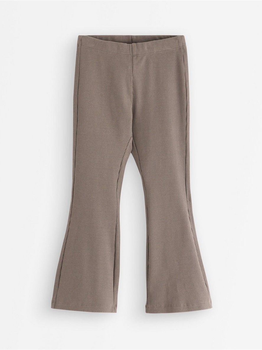 Mekane helanke od pamučnog džerseja sa rebrastom teksturom i proširenim nogavicama.
