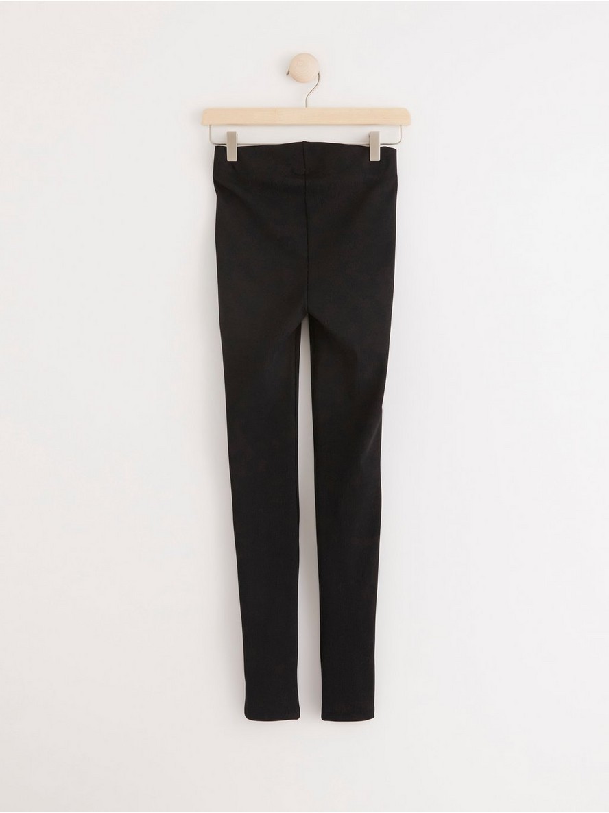 Par udobnih rebrastih helanki sa visokim, elastičnim pojasom. Napravljene od meke, rastegljive tkanine.