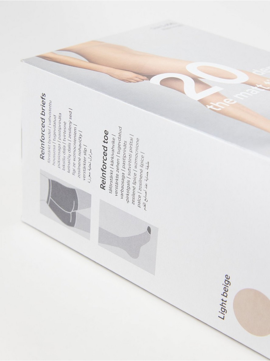 Četiri para mat hulahopki od 20 denijara sa ojačanim gaćicama i ojačanim vrhom.