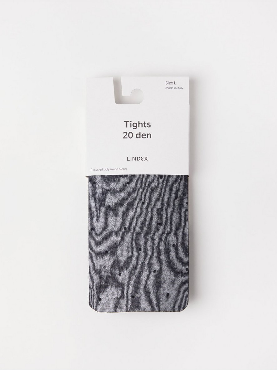 Najlonke od 20 den sa polusjajnim finišem i uzorkom tačkica po celoj površini.