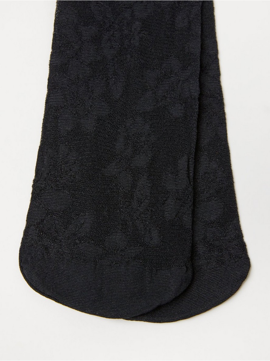 Najlonke 30 den sa celokupnim cvetnim čipkastim dezenom i polusjajnim finišem.
