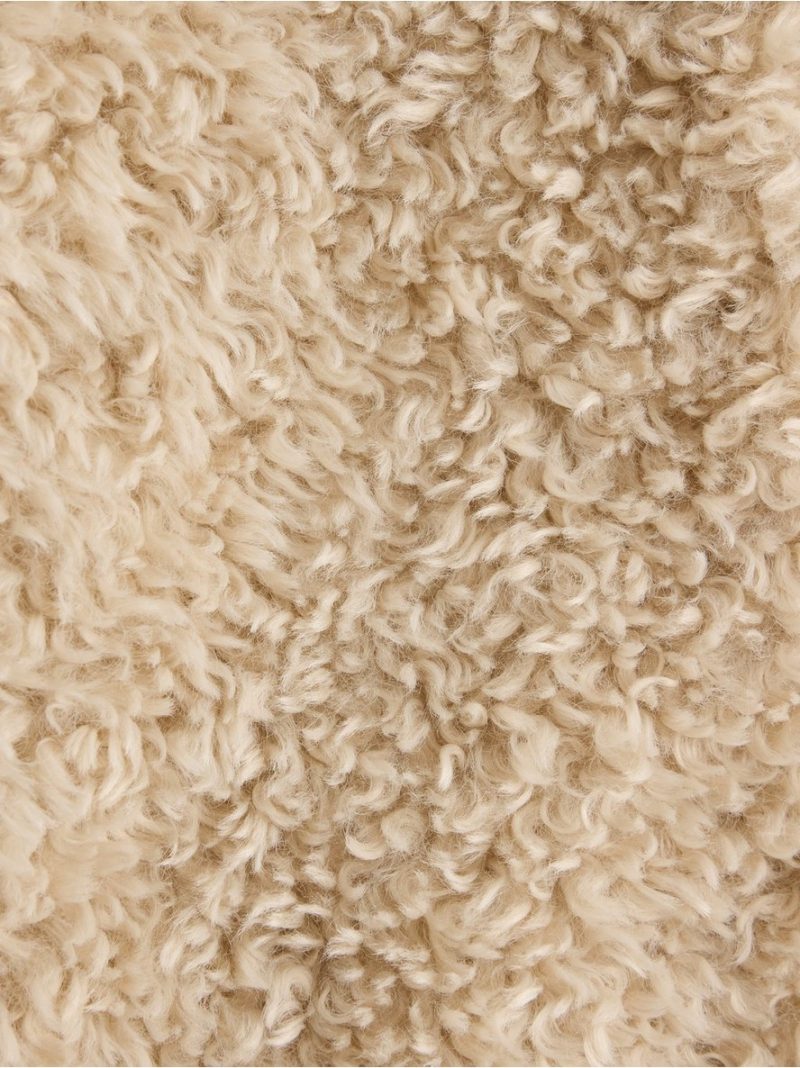 Jakna od pufnastog veštačkog krzna sa visokim kragnom i bočnim džepovima.