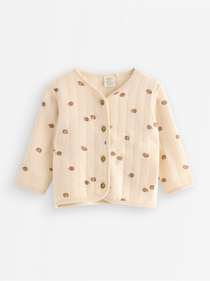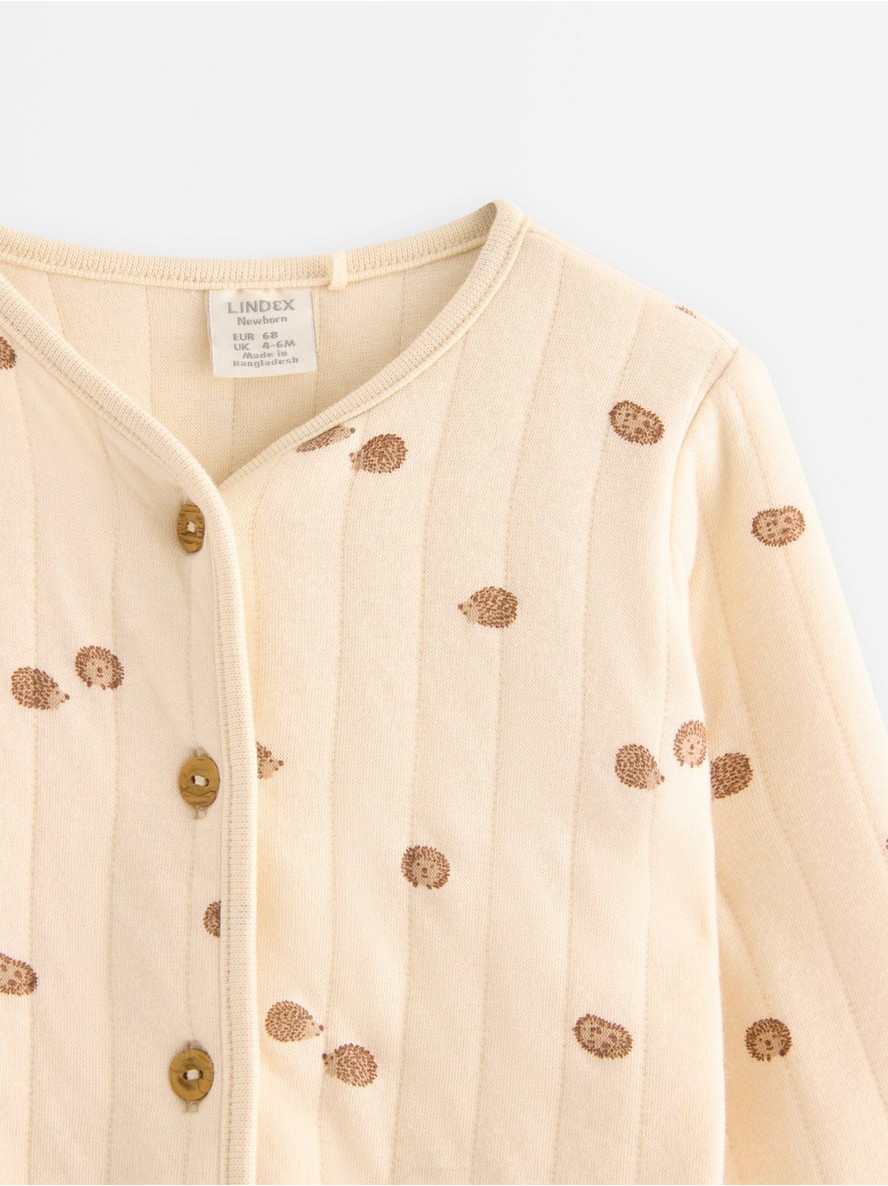 Prešivena jakna u mekom pamučnom džerseju sa dugim rukavima i kopčanjem na dugmad.