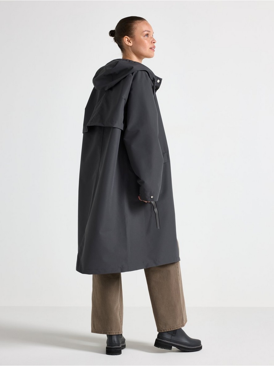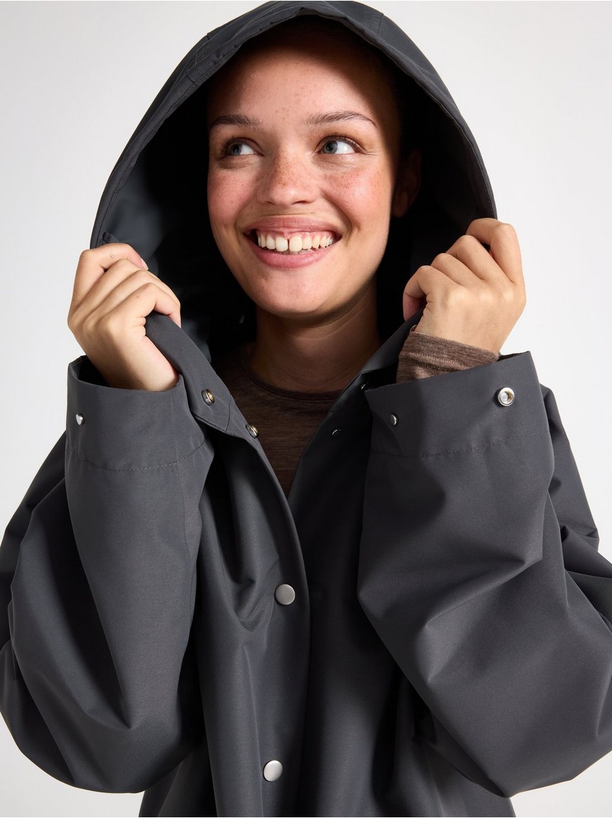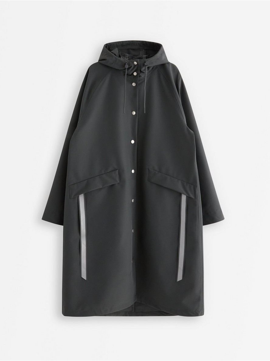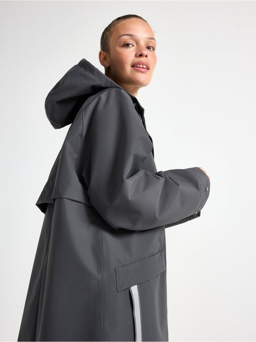 Vodootporna i vetrootporna jakna sa zapečaćenim šavovima, reflektujućim trakama i visokim kragnom sa kapuljačom.