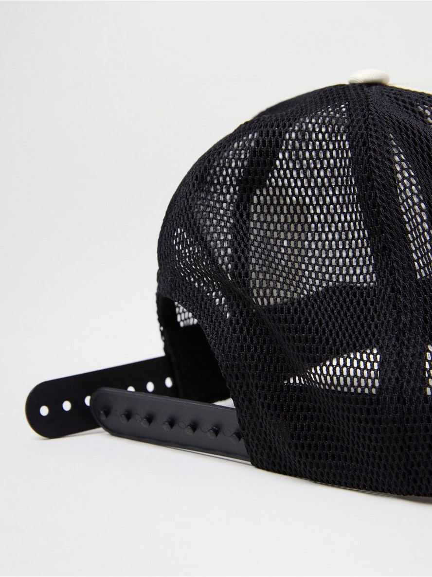 Kačket sa zaobljenim šiltom i mrežicom na zadnjem delu. Kačket ima podesivu traku.