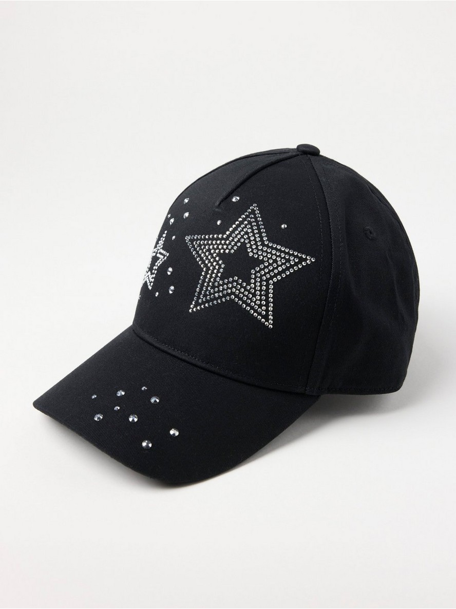 Kačket sa štrasom na prednjem delu i podesivom trakom na zadnjem delu.