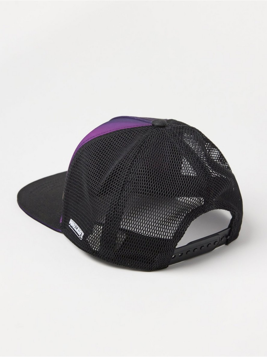 Kačket sa ravnim šiltom i mrežicom pozadi.