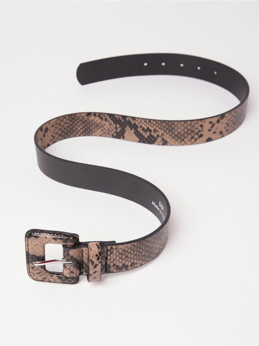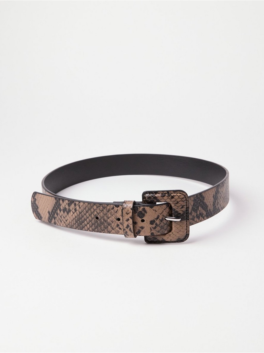 Stilski kaiš od imitacije kože sa metalnom kopčom.