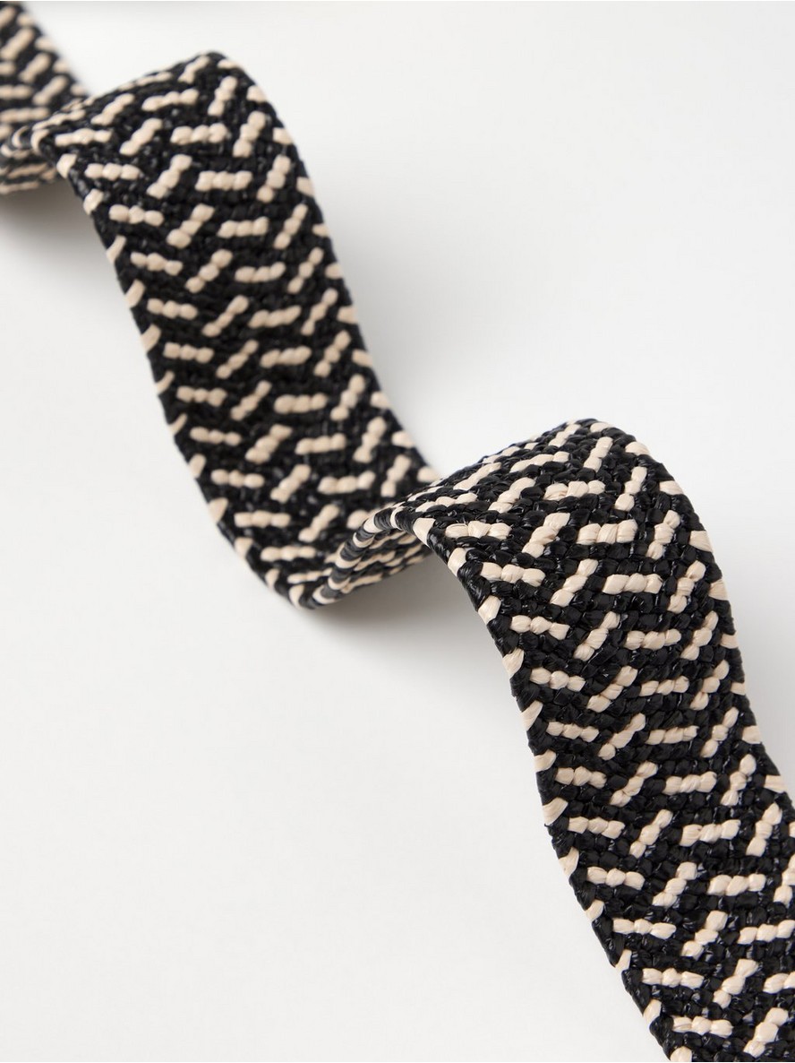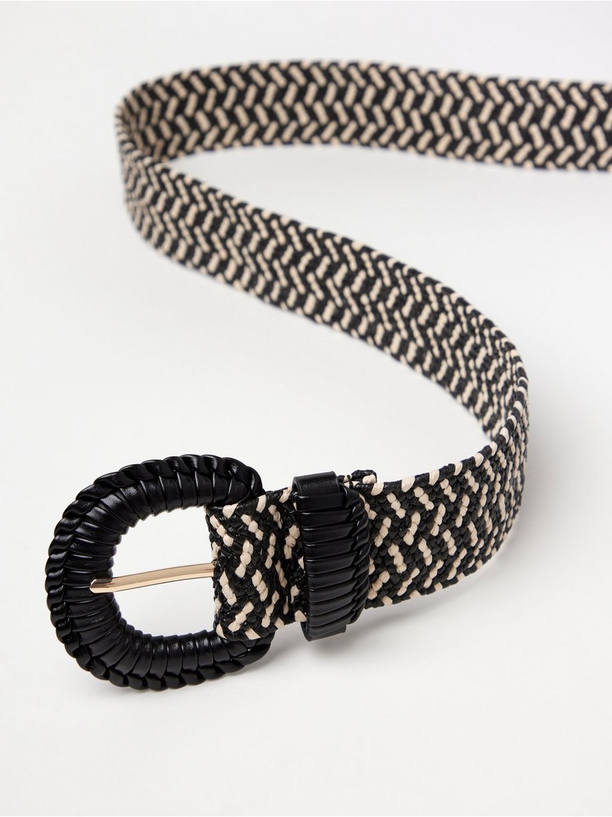 Široki pleteni kaiš sa teksturiranom završnom obradom i zaobljenom kopčom.