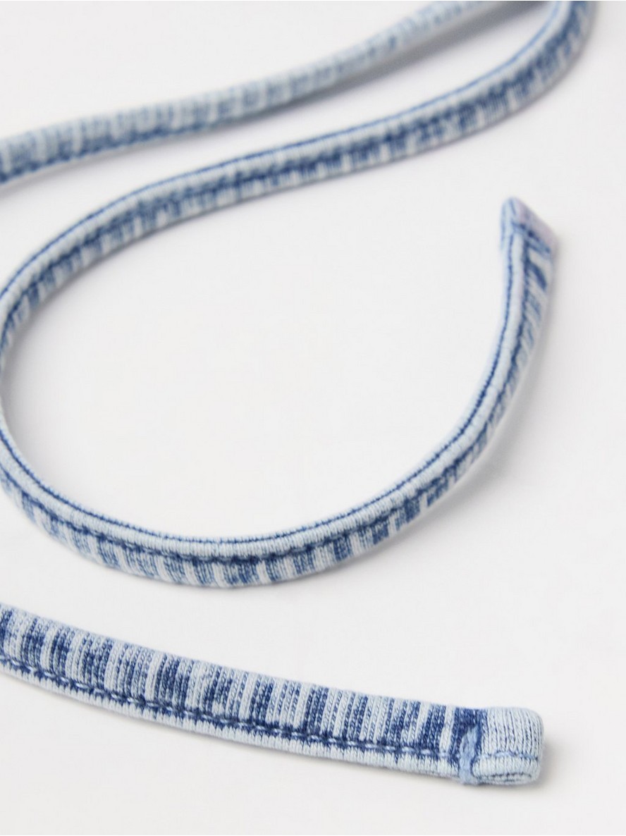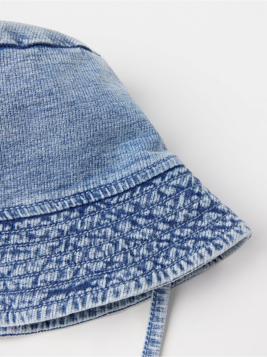 Bucket šešir od džins trikotaže sa trakicom za vezivanje.